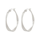 Die in sich gedrehte Form verleiht den Ohrringen eine lebendige Dynamik und unterstreicht ihre handwerklich anmutende Ästhetik. Die fein strukturierte, organische Oberfläche sorgt für ein spannendes Spiel aus Licht und Schatten und macht jedes Paar zu einem stilvollen Blickfang. Abgerundet wird das Design durch ein mattes, helles Silber-Finish.