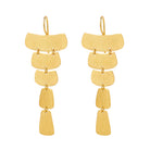 Unsere goldenen Ohrhänger Ananya sind ein ausdrucksstarkes Statement Piece mit moderner Eleganz. Fünf unregelmäßig geformte, rechteckige Münzanhänger reihen sich harmonisch untereinander und verleihen dem Design durch ihre charaktervoll gebürstete Oberfläche eine besondere Tiefe. Das Zusammenspiel aus Licht und Struktur unterstreicht den handgearbeiteten, organischen Look der Ohrhänger.