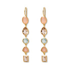 Die goldenen Ohrhänger Camille sind ein ausdrucksstarkes Statement-Piece mit moderner Eleganz. Fünf farbige Edelsteine in sanften Pastelltönen reihen sich harmonisch untereinander und verleihen dem Design eine elegante Leichtigkeit. Ein funkelnder Morganit in zartem Rosé wird ergänzt durch einen leuchtenden Orange Jade und einen Stein aus hellblauer Jade – eine Farbkombination, die zugleich verspielt und edel wirkt.