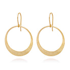 Die vergoldeten Ohrringe Odette aus 925 Sterling Silber bestehen aus einem kreisrunden, ausgeschnittenen Anhänger mit fein strukturierter, matter Oberfläche.