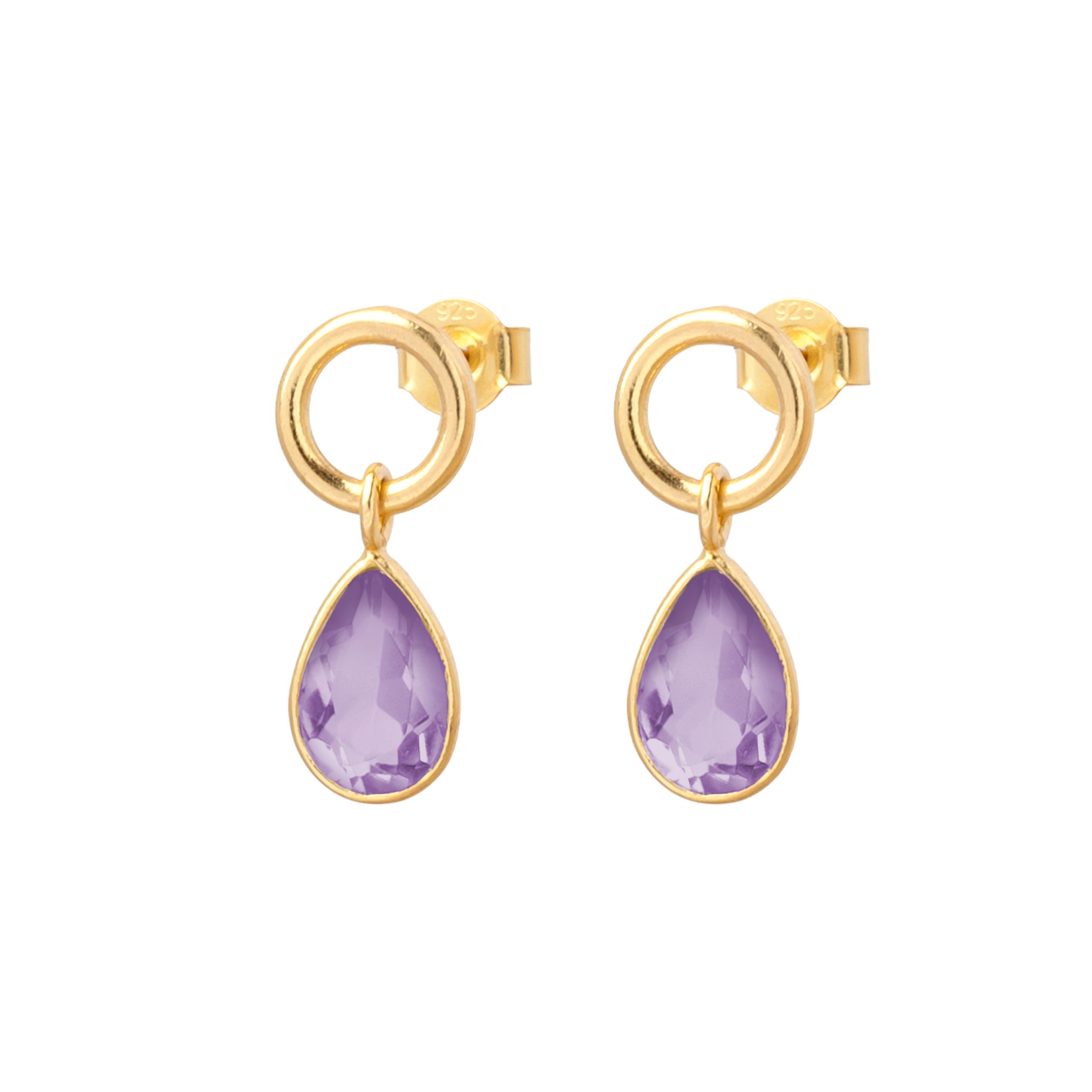 Diese Circle-Ohrstecker aus 925 Sterling Silber, veredelt mit zart schimmerndem 18k Gold, wirken modern und zugleich klassisch. Den Mittelpunkt bildet ein tropfenförmiger Amethyst in tiefem Violett – ein Edelstein, der seit Jahrhunderten für Klarheit und Ruhe steht.