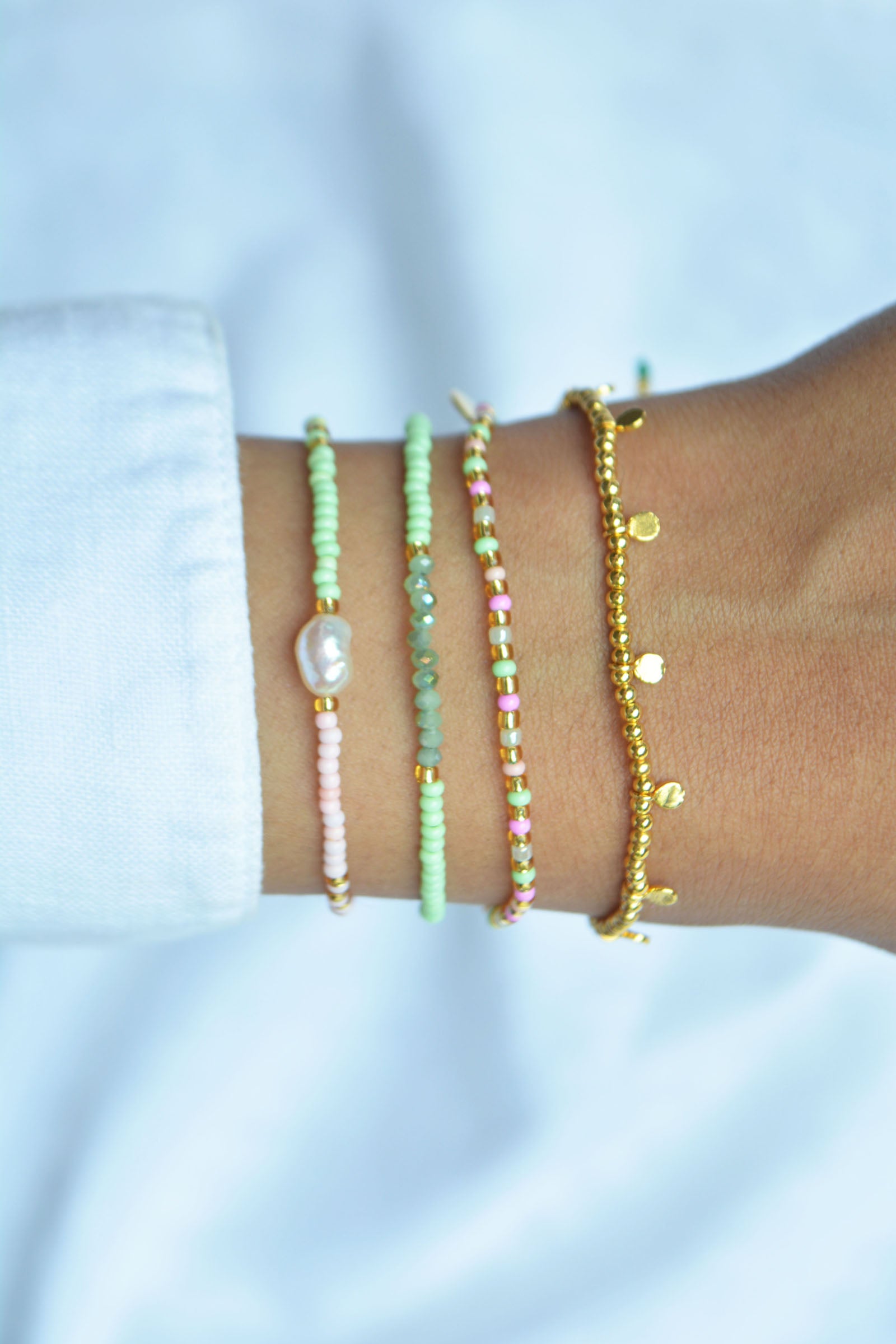 This also applies to the gold and silver beads. These are coated on the inside, so they will become duller over time due to wear on the jewelry wire. Please follow our care instructions below to ensure you can enjoy your jewelry for a long time.
