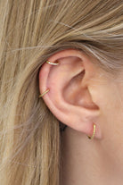 With its twisted surface, the Huggie earring is a perfect match for the bigger 11 mm Creole Twist. Our model wears the 11 mm creole on her right side of the ear and the 6 mm creole on her left side.