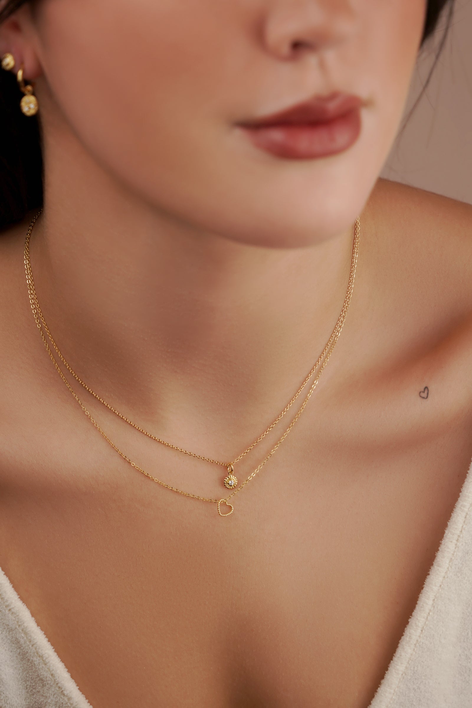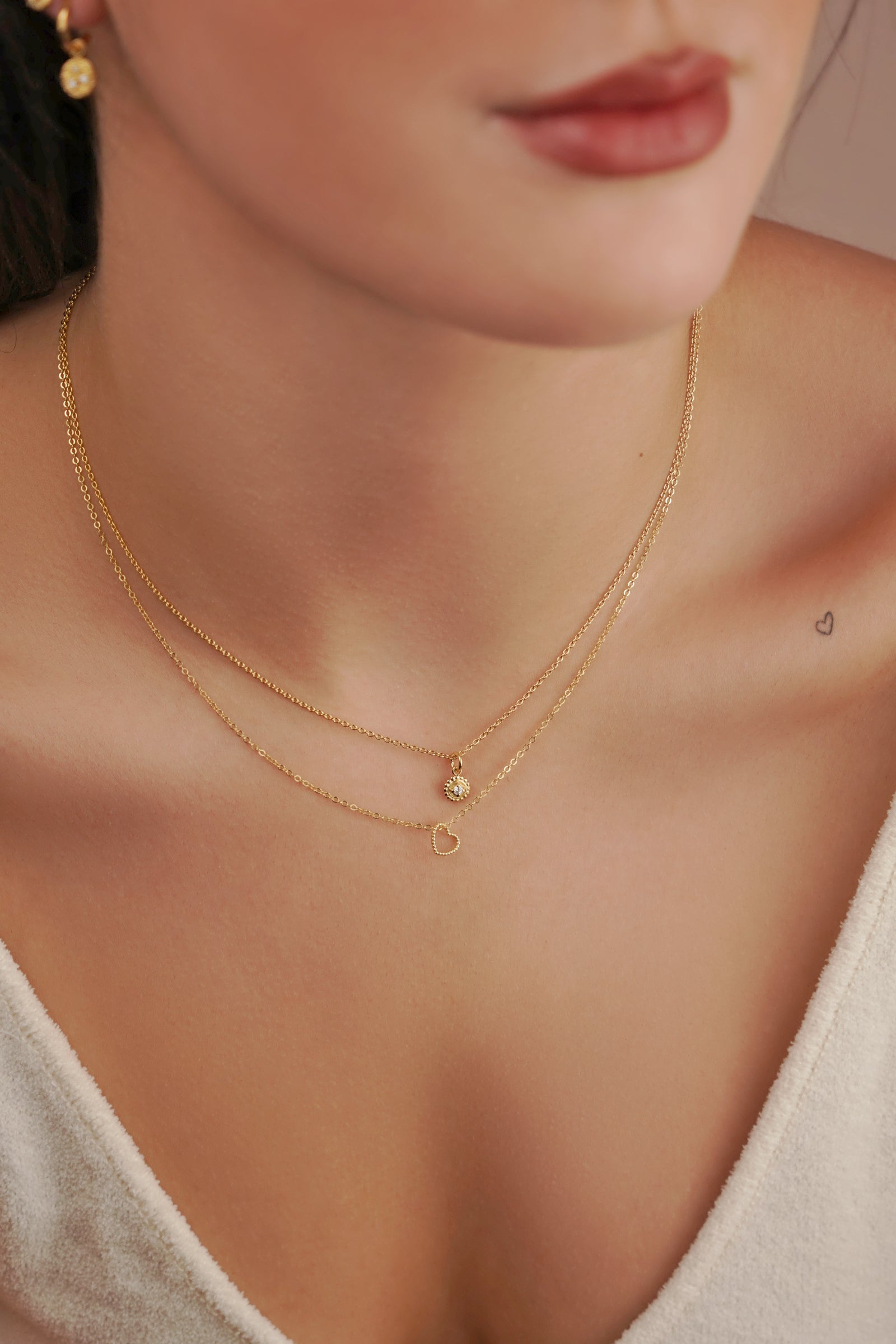 The shiny, gold-plated coins lie elegantly on the cleavage and make our Rialto necklace a real statement piece.