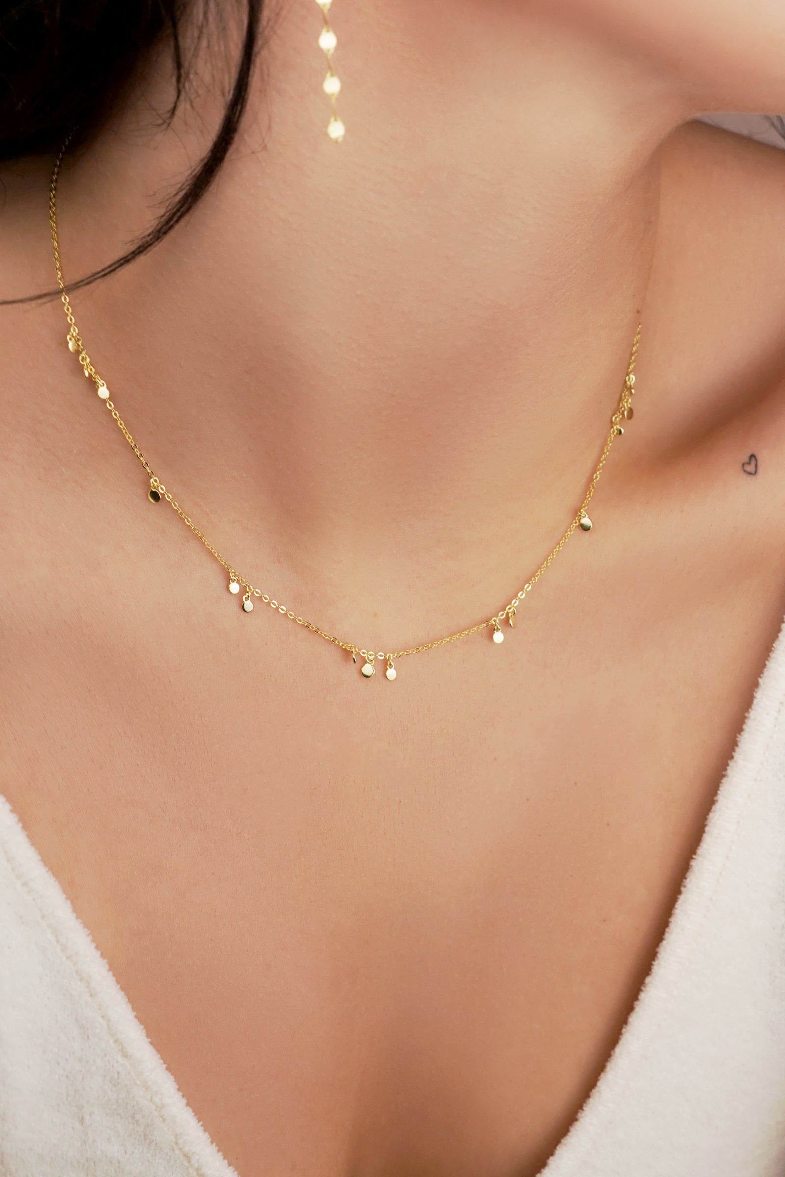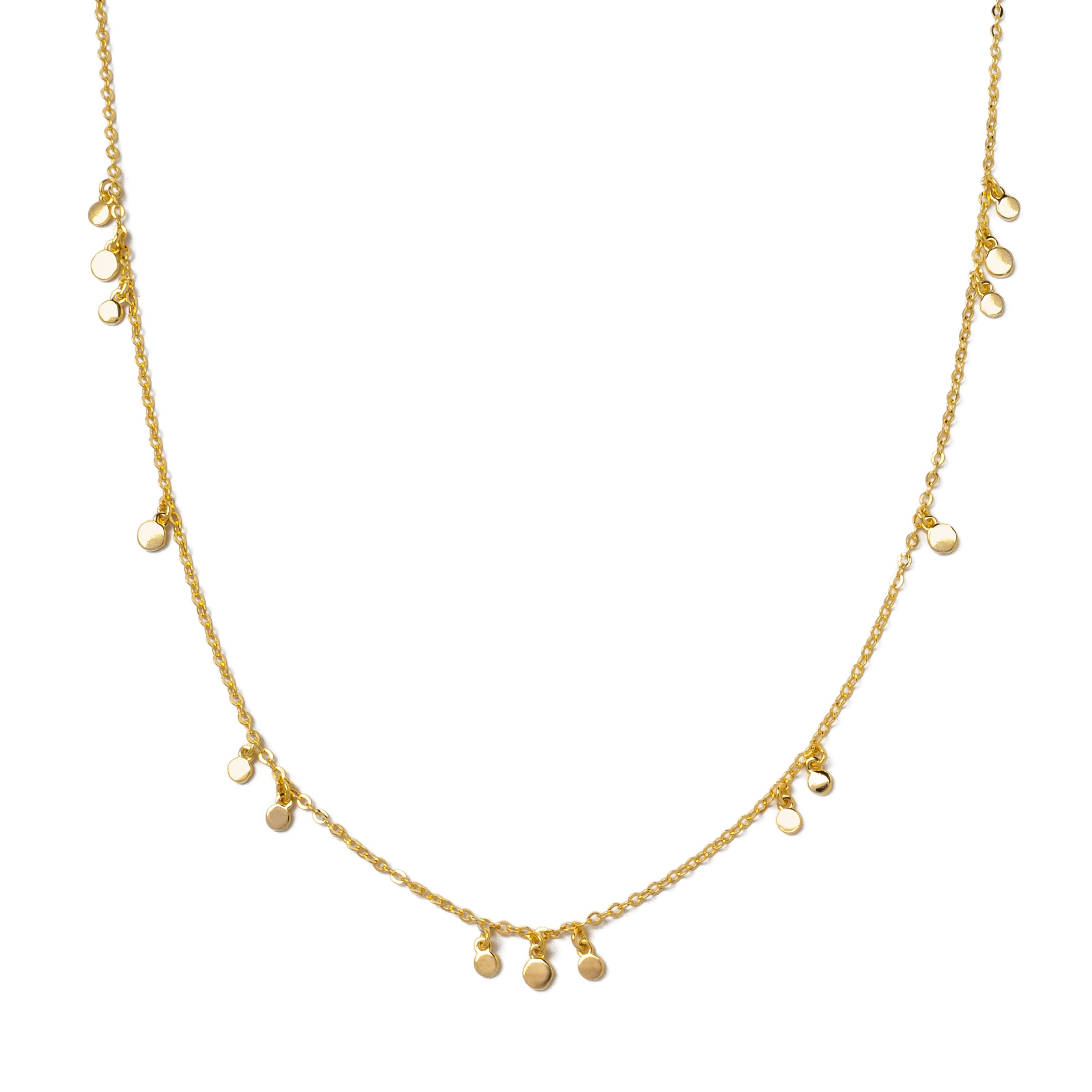 The polished coins have a diameter of 4 mm. The chain made of 18k gold-plated 925 silver is 40 cm long and can be extended by 5 cm. We have the matching bracelet in our collection.