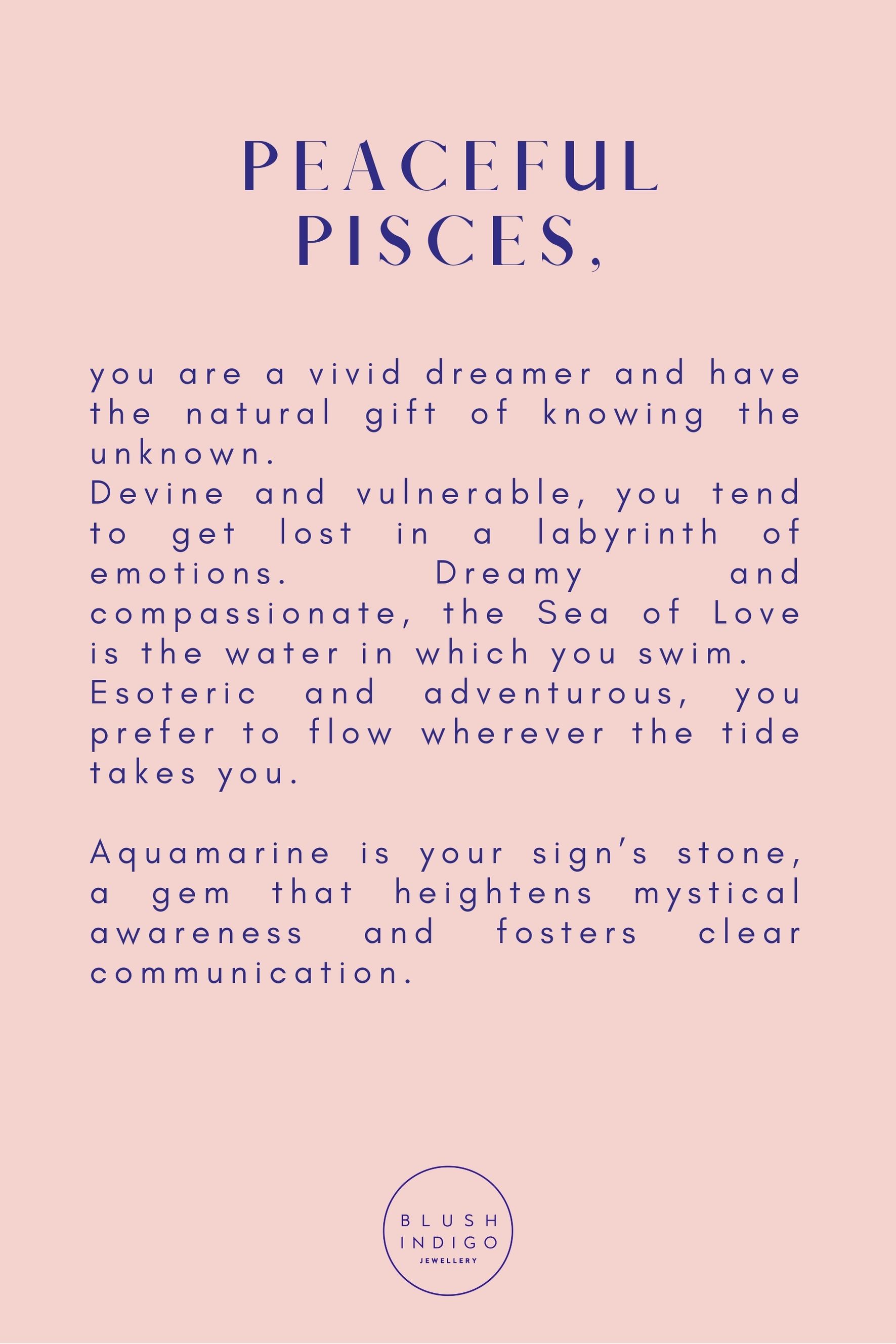 dreamy. Your birthstone, the Aquamarine, is said to promote courage, awareness and communication.