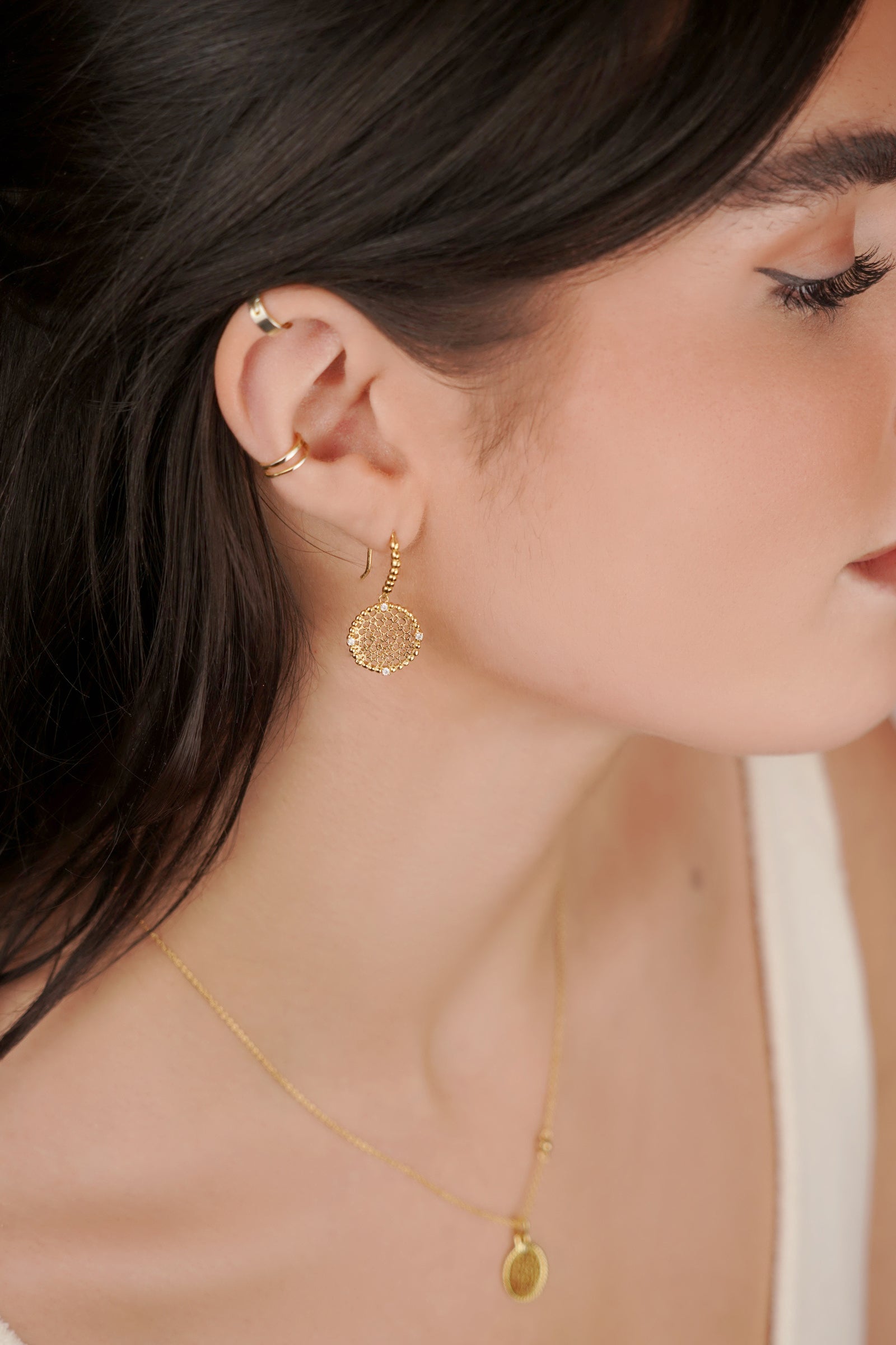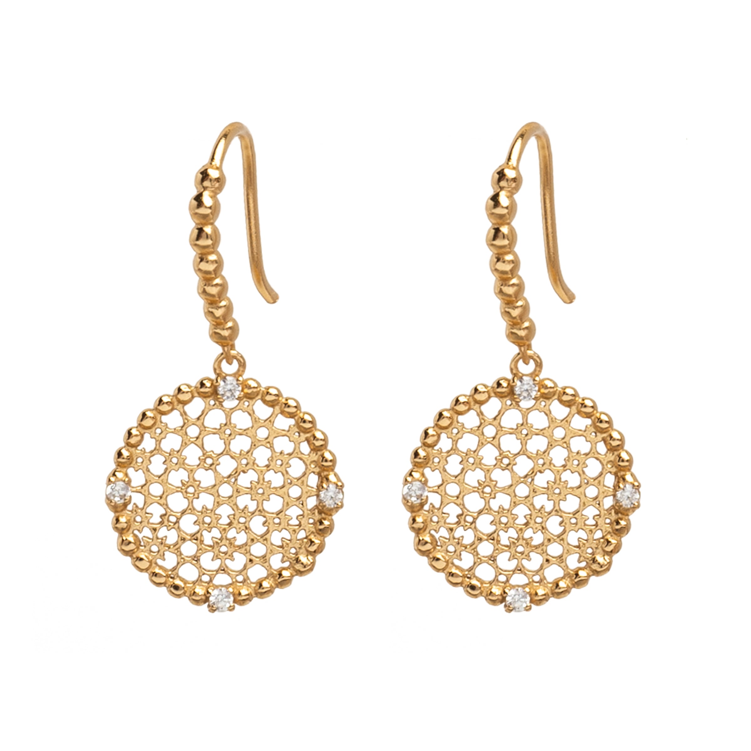 All earrings and hoops are made of 18k gold plated 925 sterling silver.