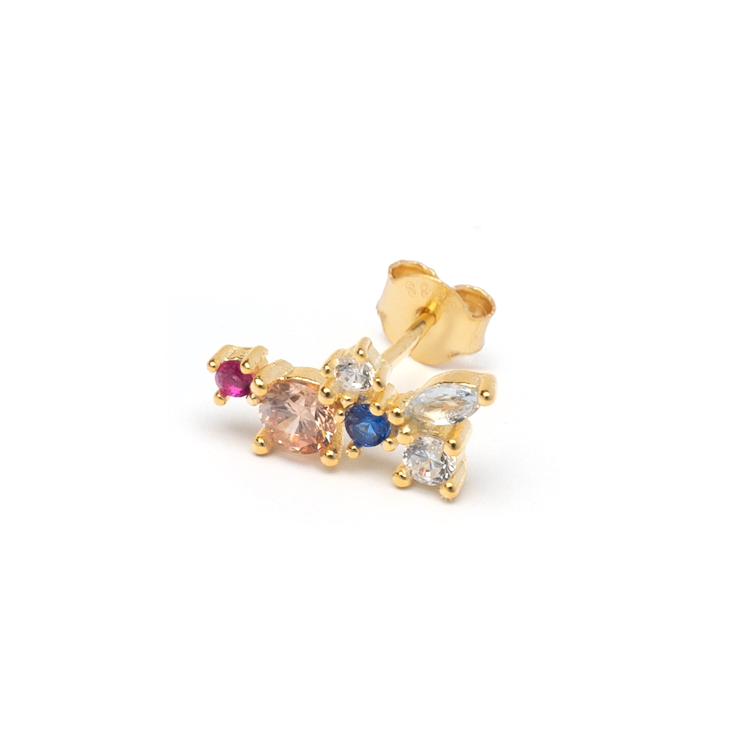Like a precious painting, this lovely stud earring resembles art. Three zirkonia in pink, satin and lemon are arranged in an irregular shaped triangle and make the 4x6 mm earring from our Jewel Collection an elegant earpiece for all eternity.
