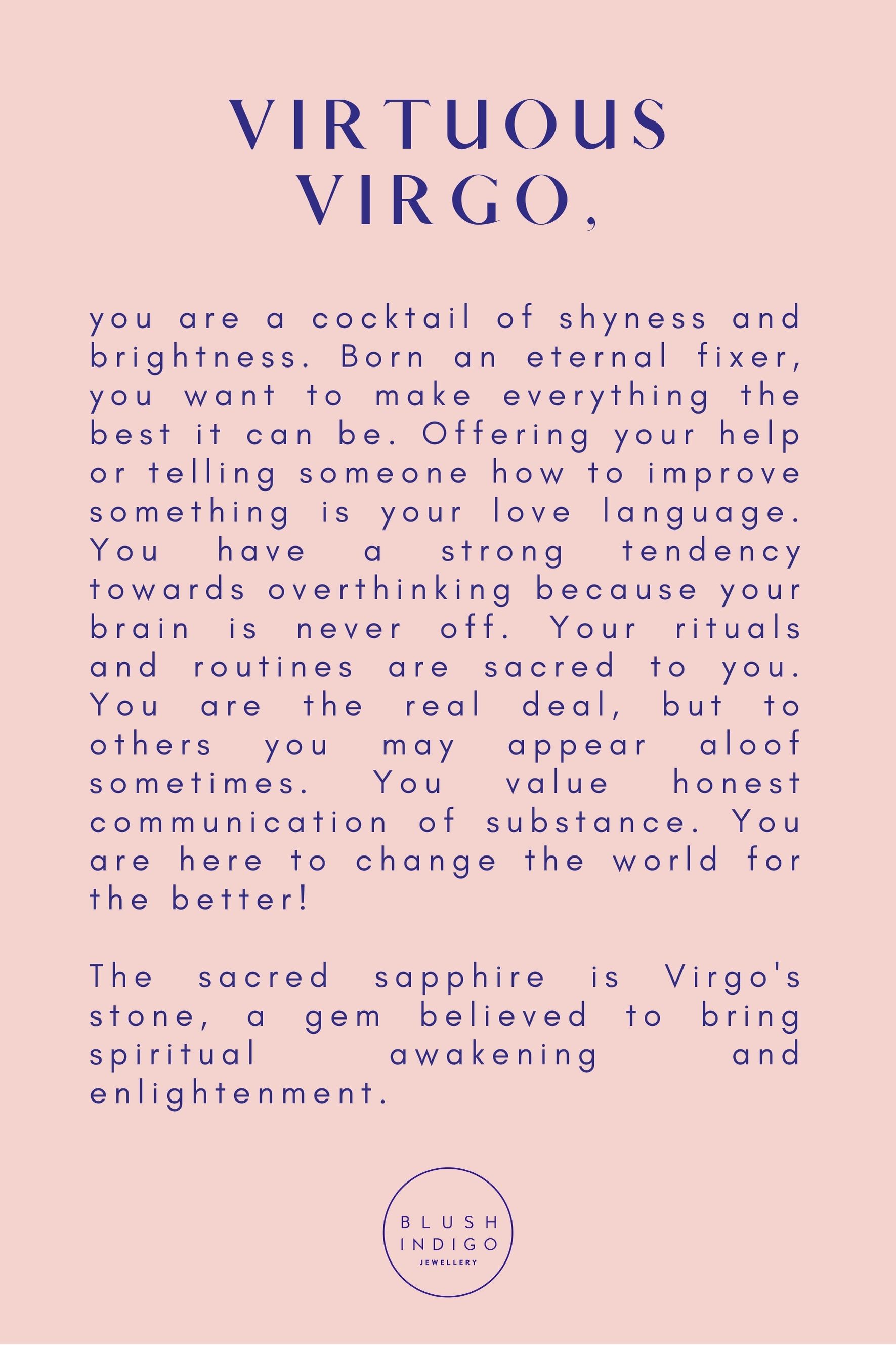 overthinking. Your birthstone, a Blue Sapphire, stands for integrity, enlightenment and compassion.