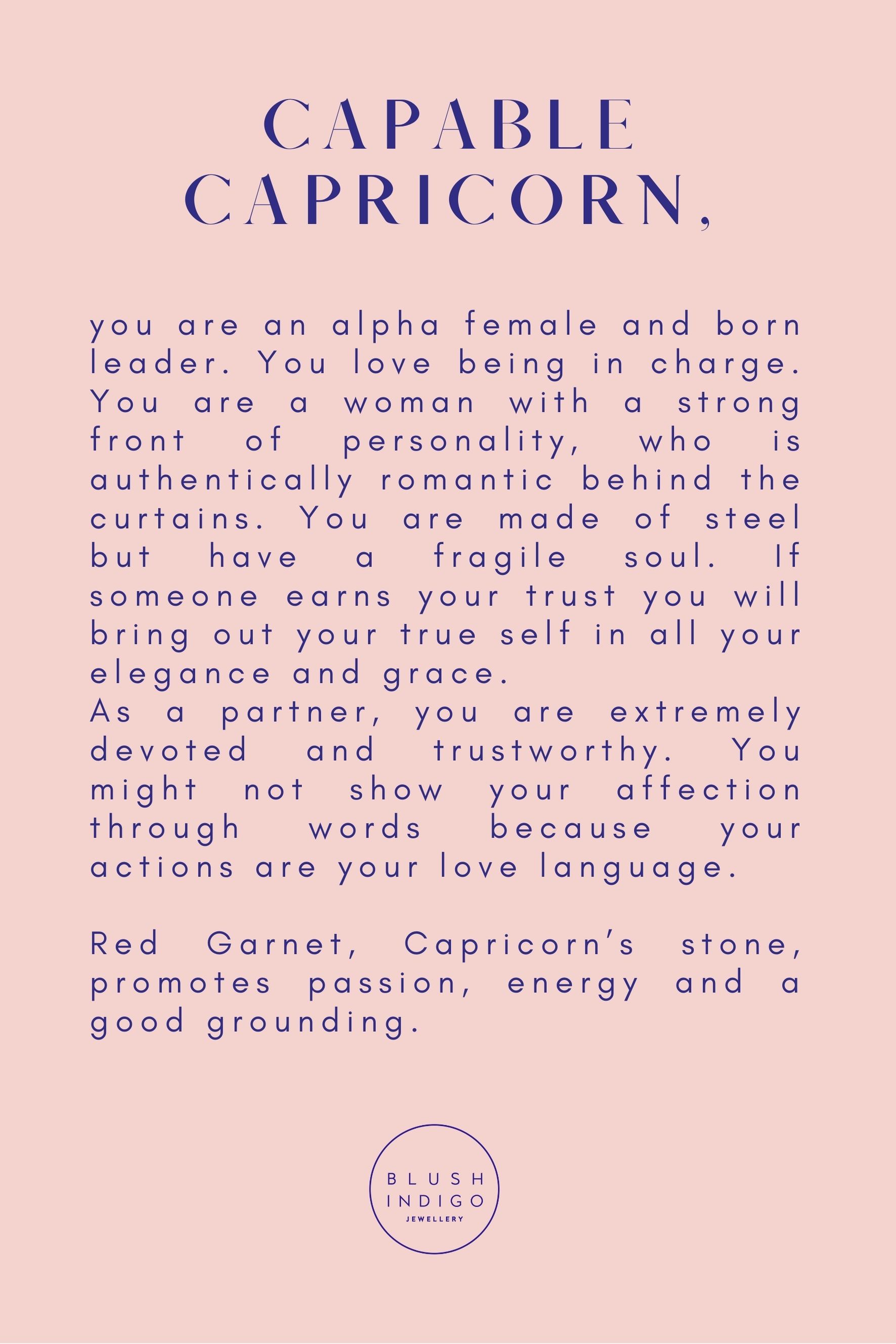 reliable. Your sign's stone is a red Garnet, a gem that is believed to promote grounding, passion and energy.
