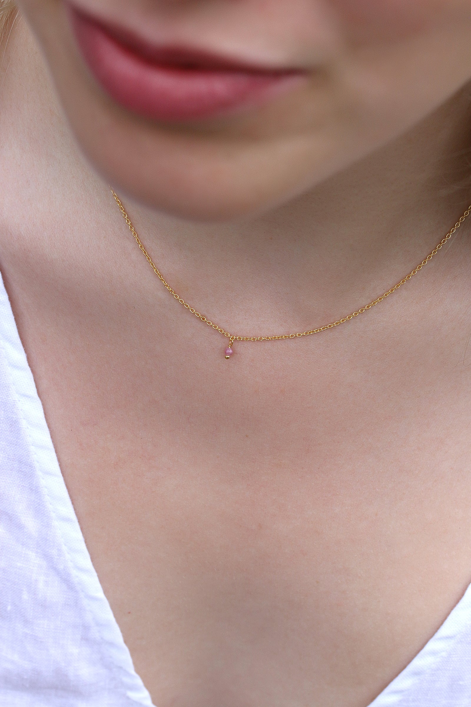 The chain is 42 cm long and can be extended by 2 cm. It is made of 925 silver and 18k gold plated. There may be minimal color variations as the 2-3 mm stones are always unique in their shape and color. Each month has its birthstone and each gemstone has its own superpowers. Choose the gemstone that suits you best. You can choose according to your birth month, your zodiac sign or ascendant, or according to the properties of the gemstone.