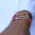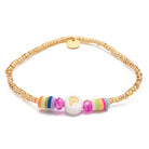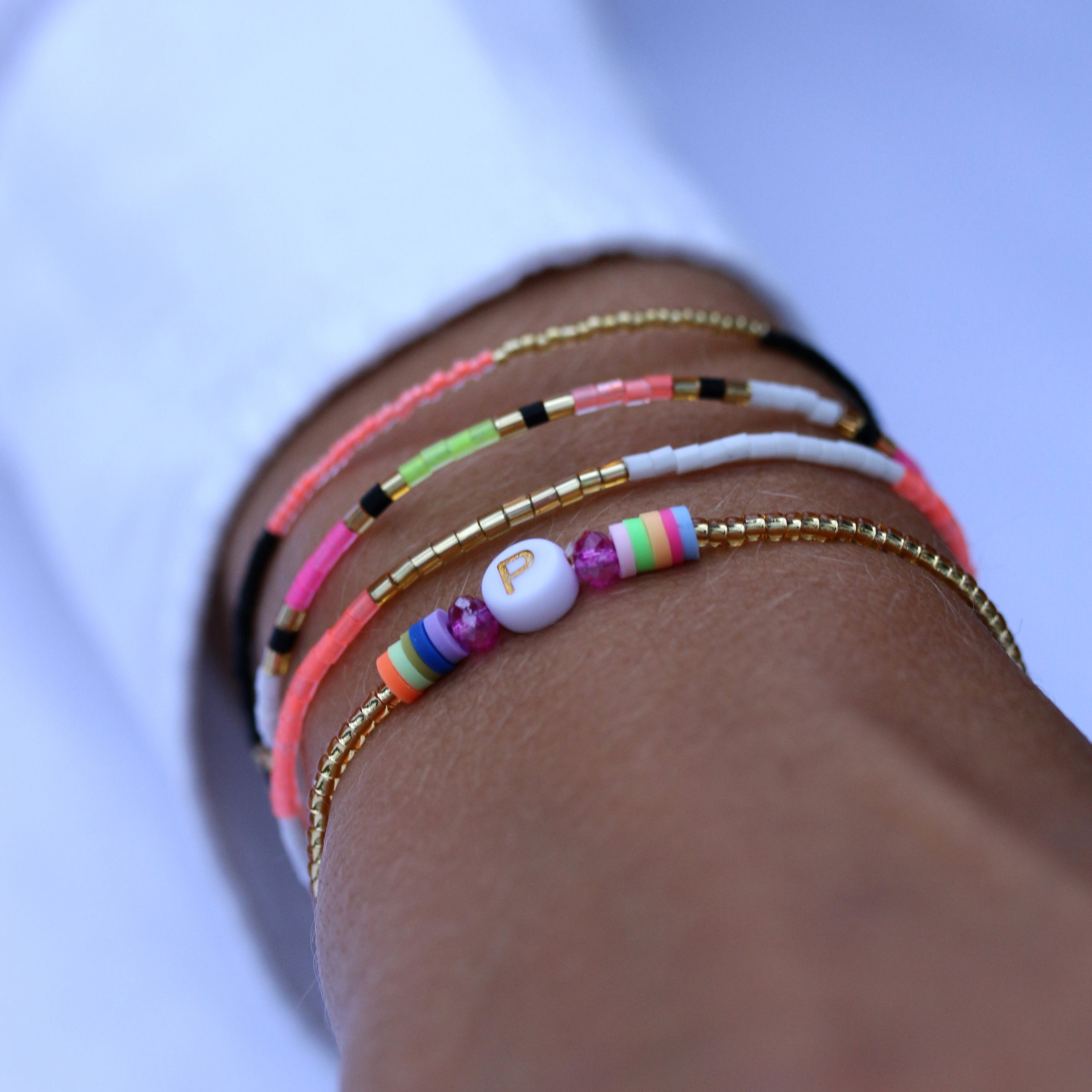 For all the Paulas, Paulines and Paolas ... The ribbon from our Candy series is not only cute to nibble on, the white pearl also celebrates your uniqueness or that of a loved one. Framing the letter are colourful crystal beads and colourful rubber Heishi Pearls.