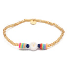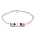For all the Valeries, Veras and Veronicas ... The ribbon from our Candy series is not only cute to nibble on, the white pearl also celebrates your uniqueness or that of a loved one. Framing the letter are colourful crystal beads and colourful rubber Heishi Pearls.