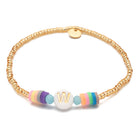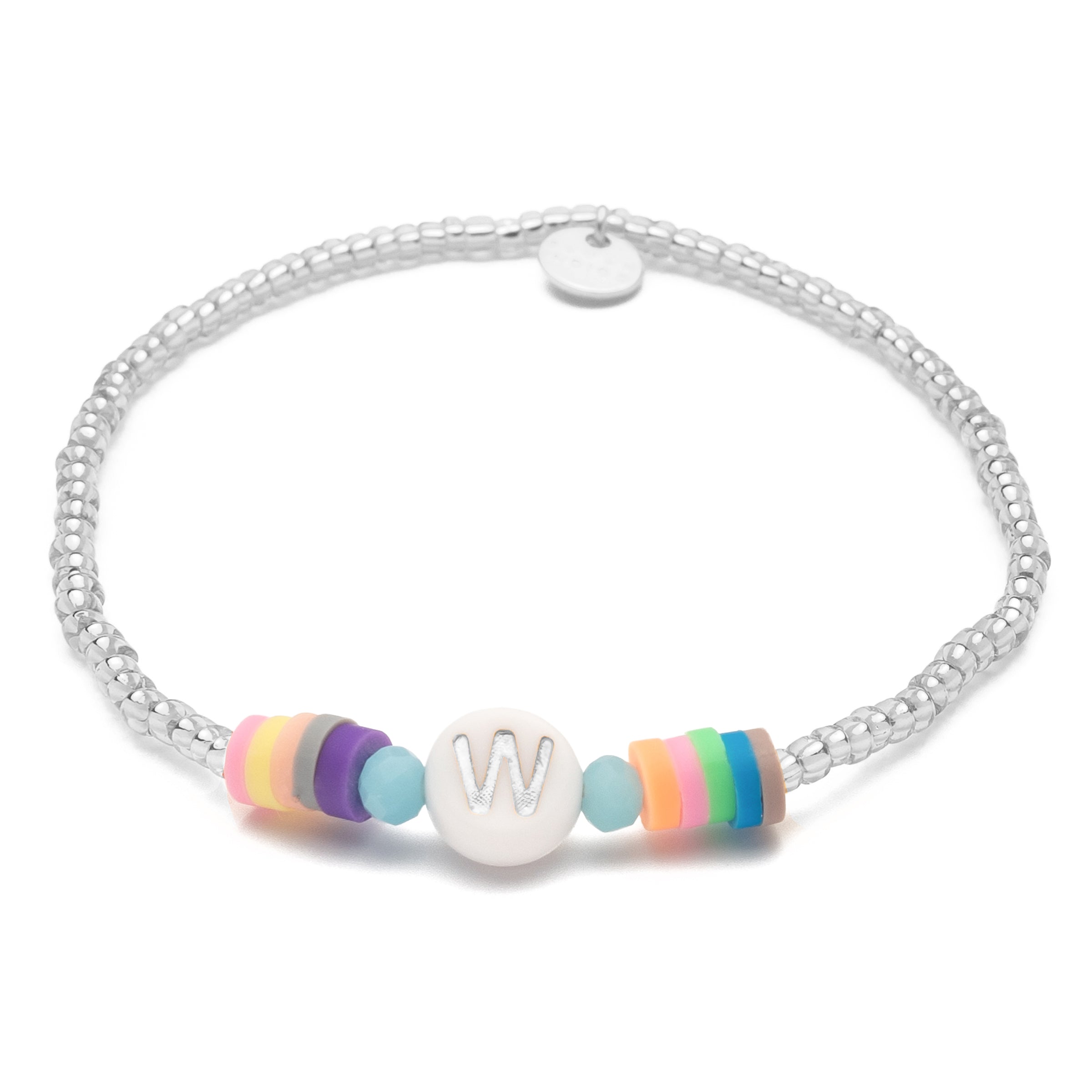 For all the Winnies, Wandas and Wilmas ... The ribbon from our Candy series is not only cute to nibble on, the white pearl also celebrates your uniqueness or that of a loved one. Framing the letter are colourful crystal beads and colourful rubber Heishi Pearls.
