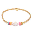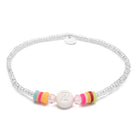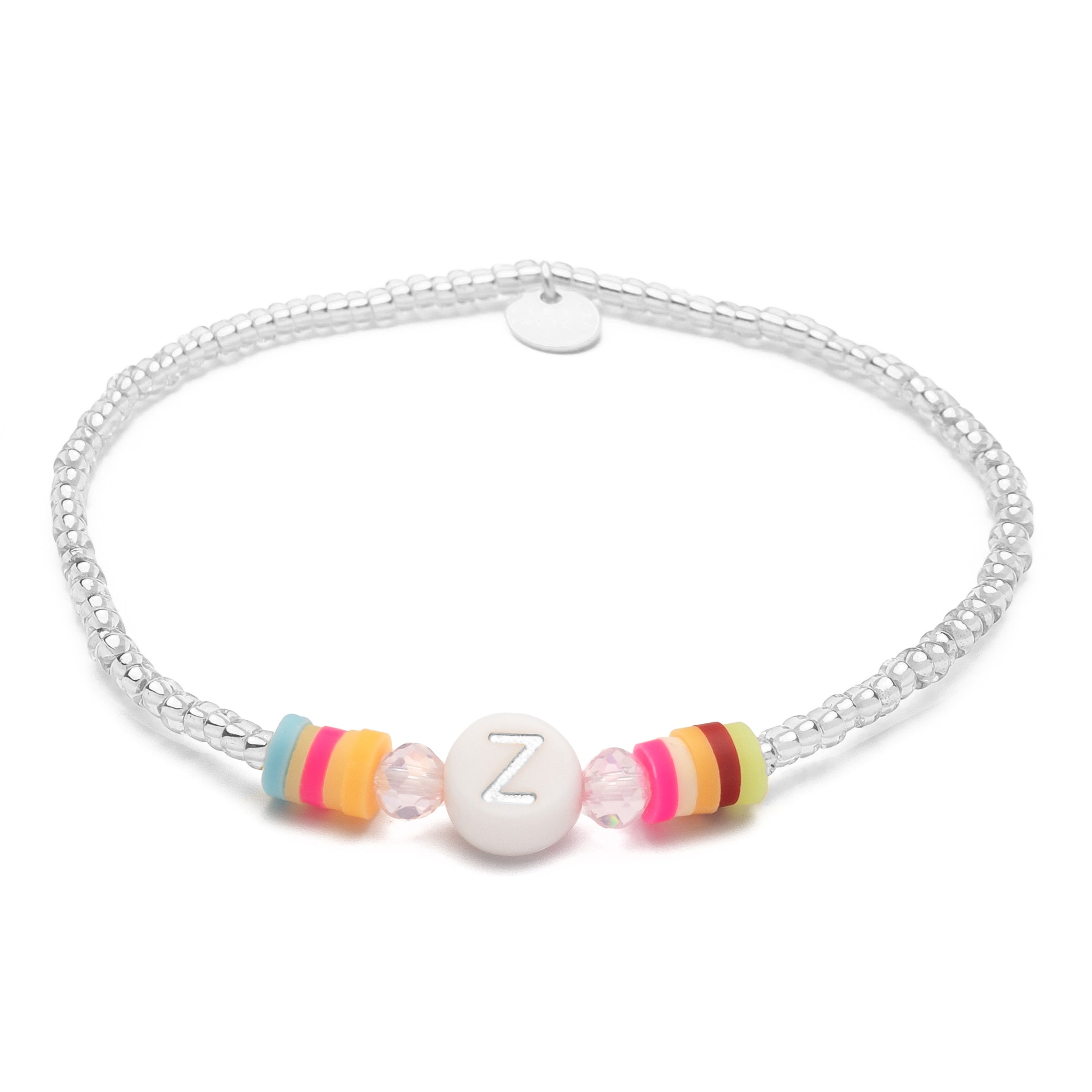 For all the Zahris, Zeldas and Zoes ... The ribbon from our Candy series is not only cute to nibble on, the white pearl also celebrates your uniqueness or that of a loved one. Framing the letter are colourful crystal beads and colourful rubber Heishi Pearls.