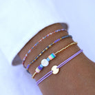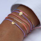 A small disc held together by nylon yarn in Lilac will make this bracelet your new darling.