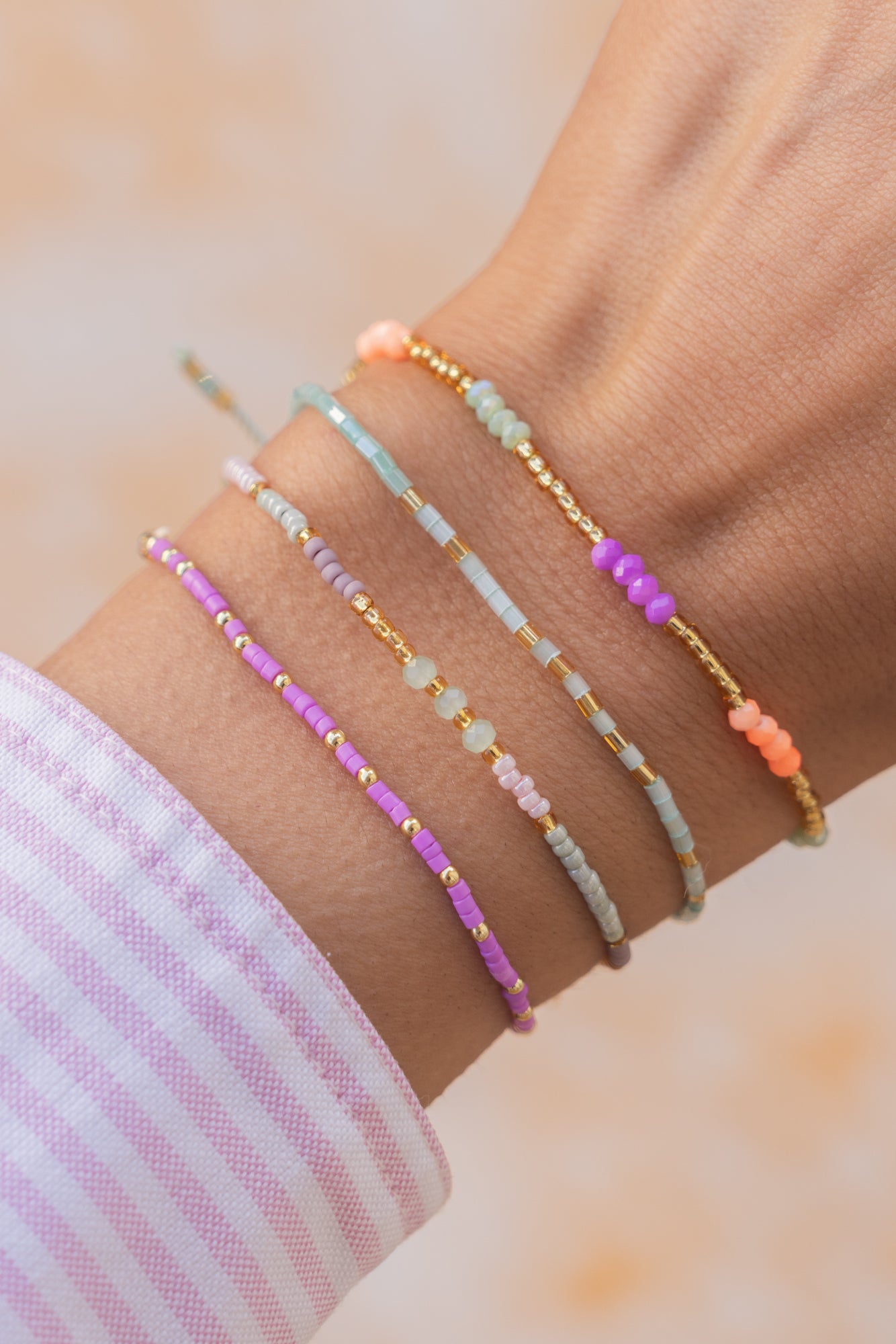 Our single-colored Jelly bracelet is particularly suitable for mixing with other bracelets. In the color Glossy Lime, it brings finesse to any wild bracelet mix of patterns or neon tones. Golden metal beads add elegant accents.