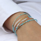 Numerous sparkling amazonite stones line up once around your wrist. Even the ancient Egyptians used the beautiful mint-green stone for jewelry, e.g. as a scarab pendant. We prefer the minimalist bracelet version. The model is also available with turquoise apatite stones.