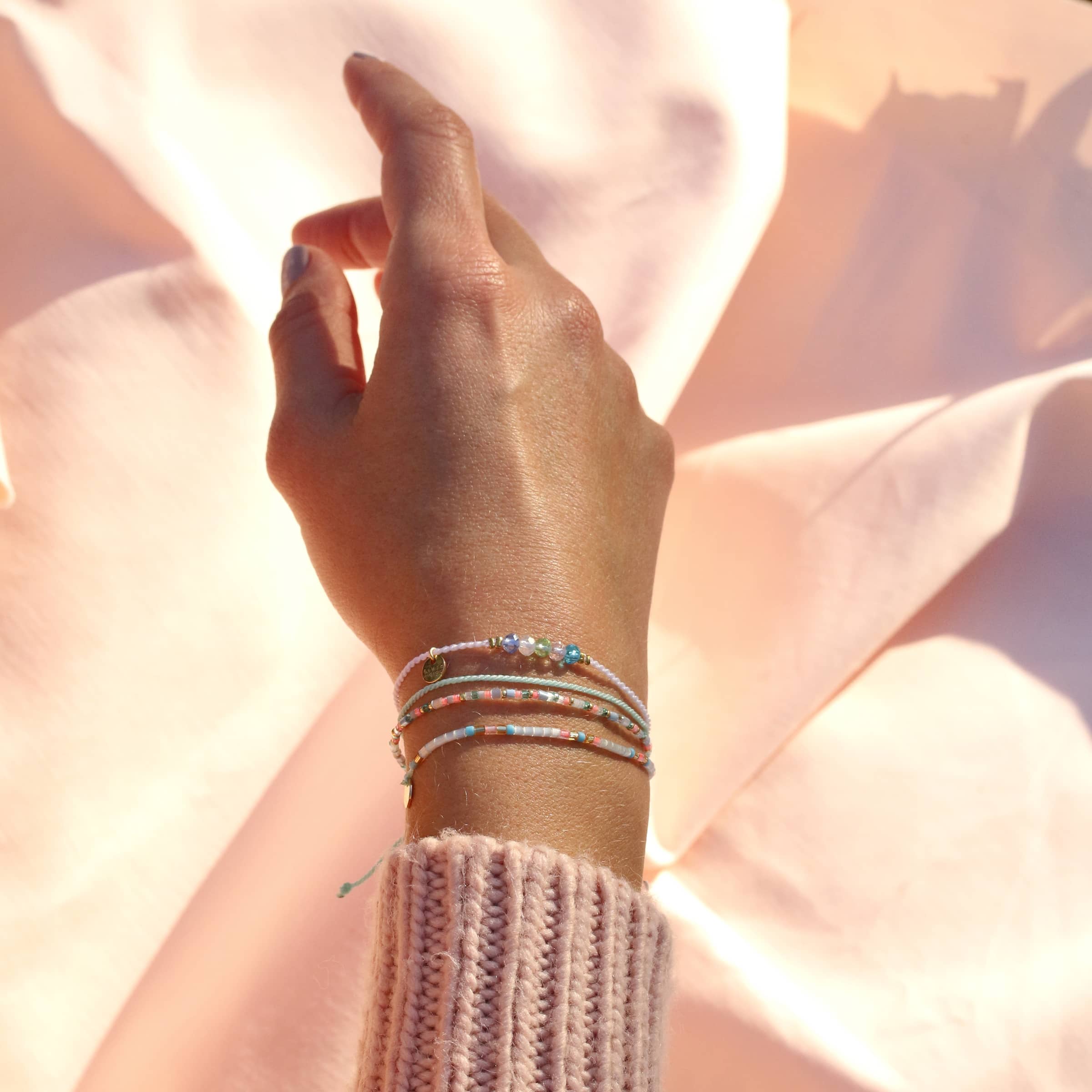 The True Temple bracelet in Light Blue is inspired by the traditional Tridatu bracelet that every
