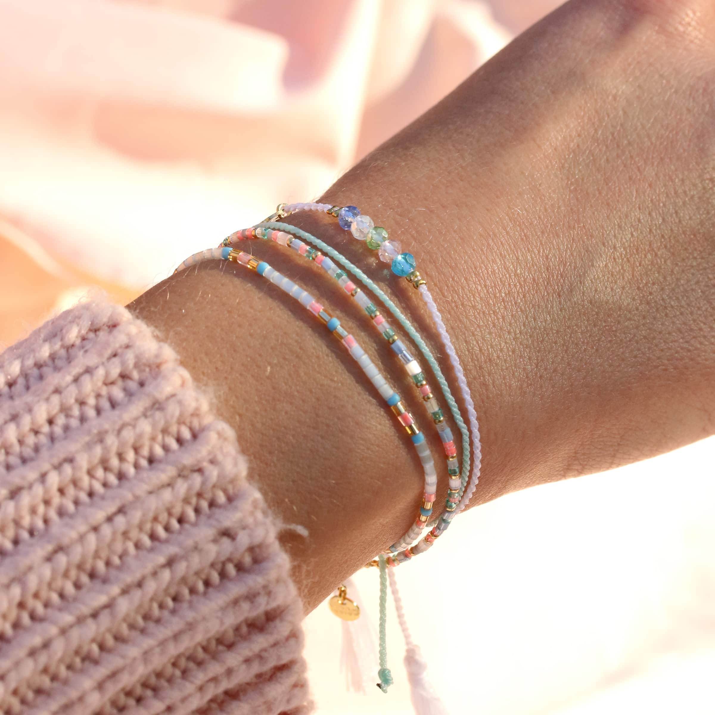 This also applies to the gold and silver beads. These are coated on the inside, so they will become duller over time due to wear on the jewelry wire. Please follow our care instructions below to ensure you can enjoy your jewelry for a long time.