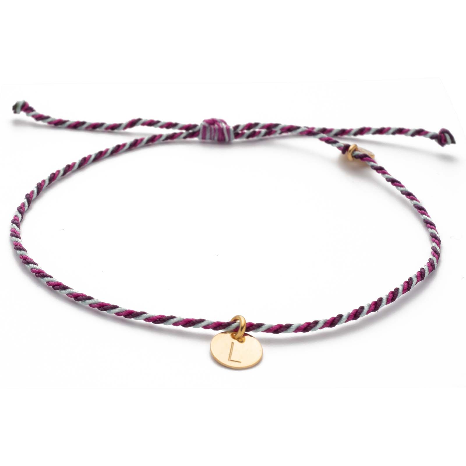 The circular 6 mm letter disk is available in gold and silver. It is stamped by hand, so no two are alike. The bracelet can be adjusted in size by the knot closure. All metal parts used are made of 24k gold plated brass and come from Germany and Italy.