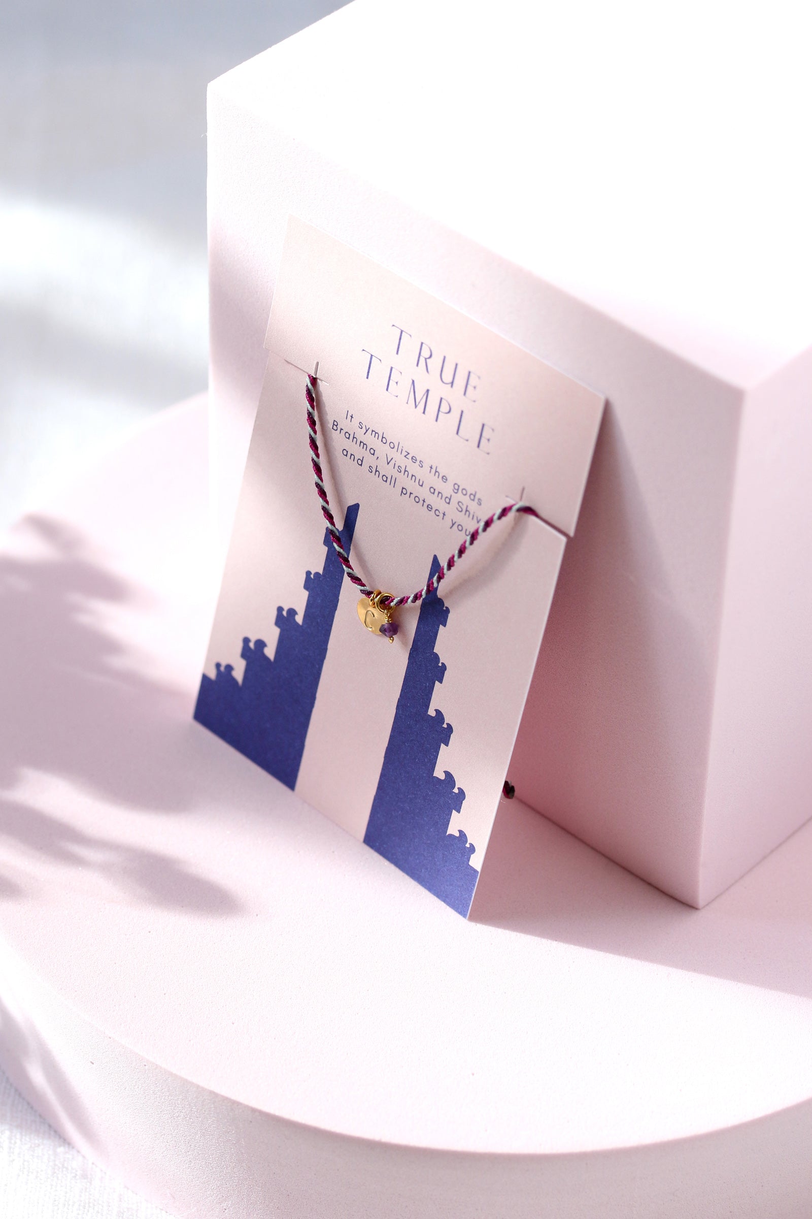 The True Temple bracelet is inspired by the traditional Tridatu bracelet that every devout Hindu receives at the temple. It consists of three intertwined ribbons - traditionally in red, black and white for the gods Brahma, Vishnu and Shiva - and is meant to protect you.