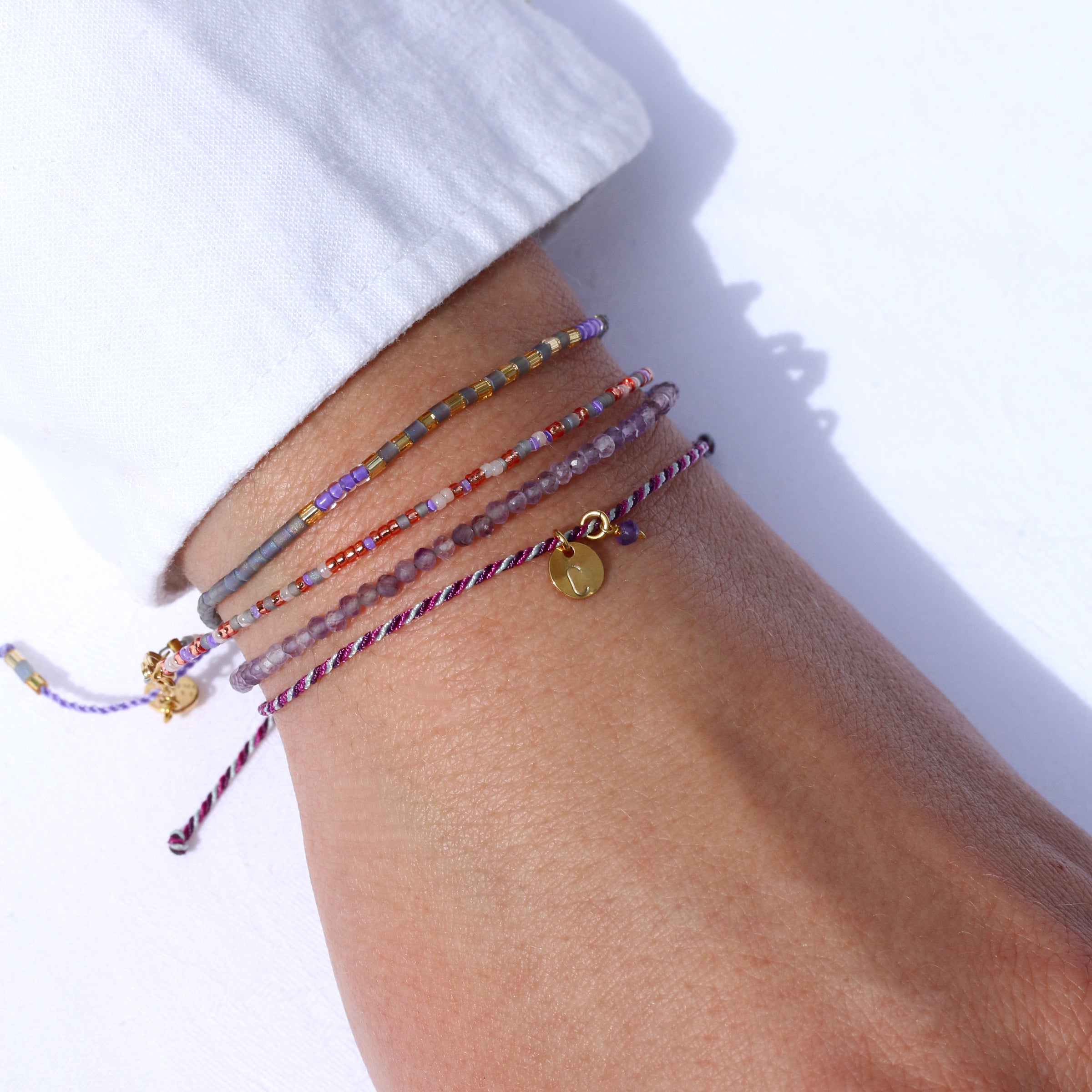 Bracelet True Temple with Letter and Birthstone - Purple Violet
