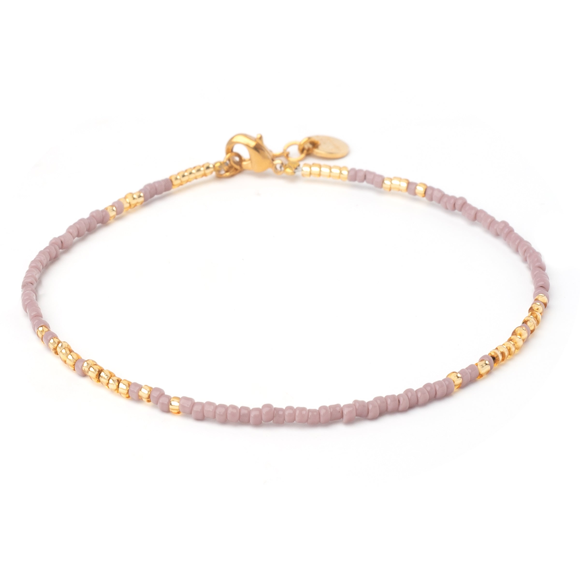 Fein schimmernde Glasperlen in Dusty Rose treffen auf dezente Goldakzente und verleihen dem Armband eine verspielte Eleganz. Ob romantisch kombiniert oder als zarter Farbtupfer solo getragen – dieses Accessoire in pudrigem Altrosa passt immer.