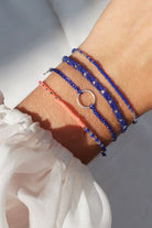 Macramé is a knotting technique originating from the Orient for making ornaments, textiles or jewelry. All bracelets are hand-knotted in Bali and Java and embroidered with golden glass beads with great attention to detail.