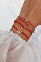 The Darling Circle bracelet has what it takes to become a favorite piece in your jewelry box. The elastic light beige nylon strap elegantly hugs your wrist. The twisted circular circle pendant made of 24k gold-plated stainless steel is the radiant centerpiece.
