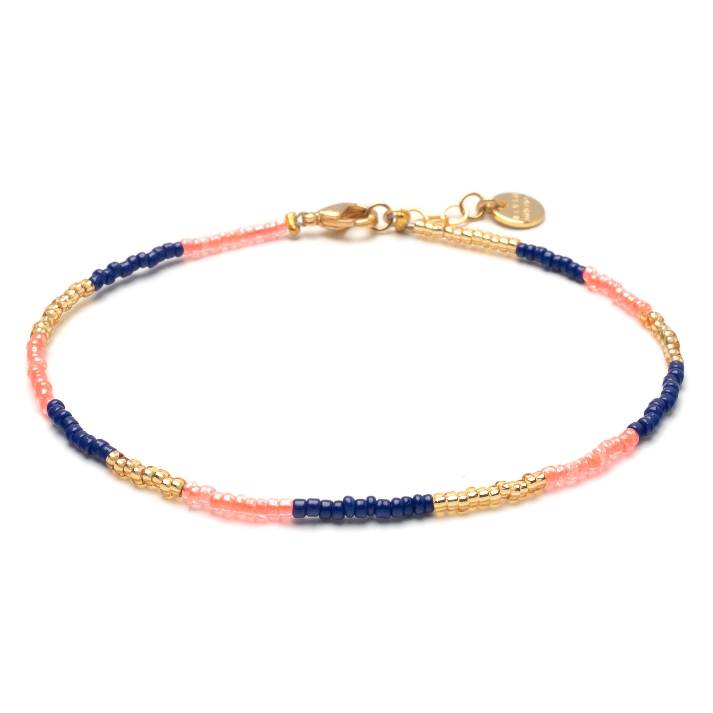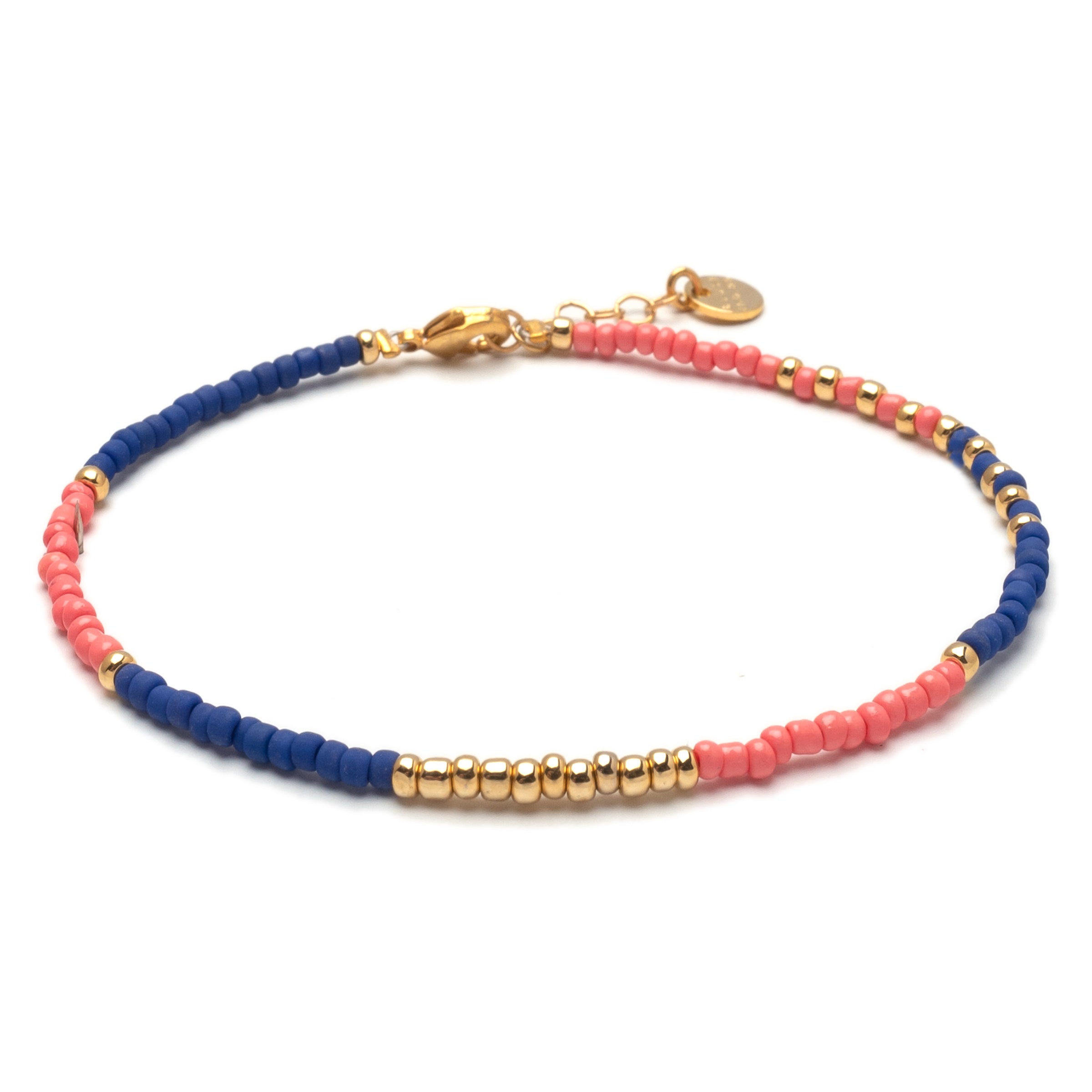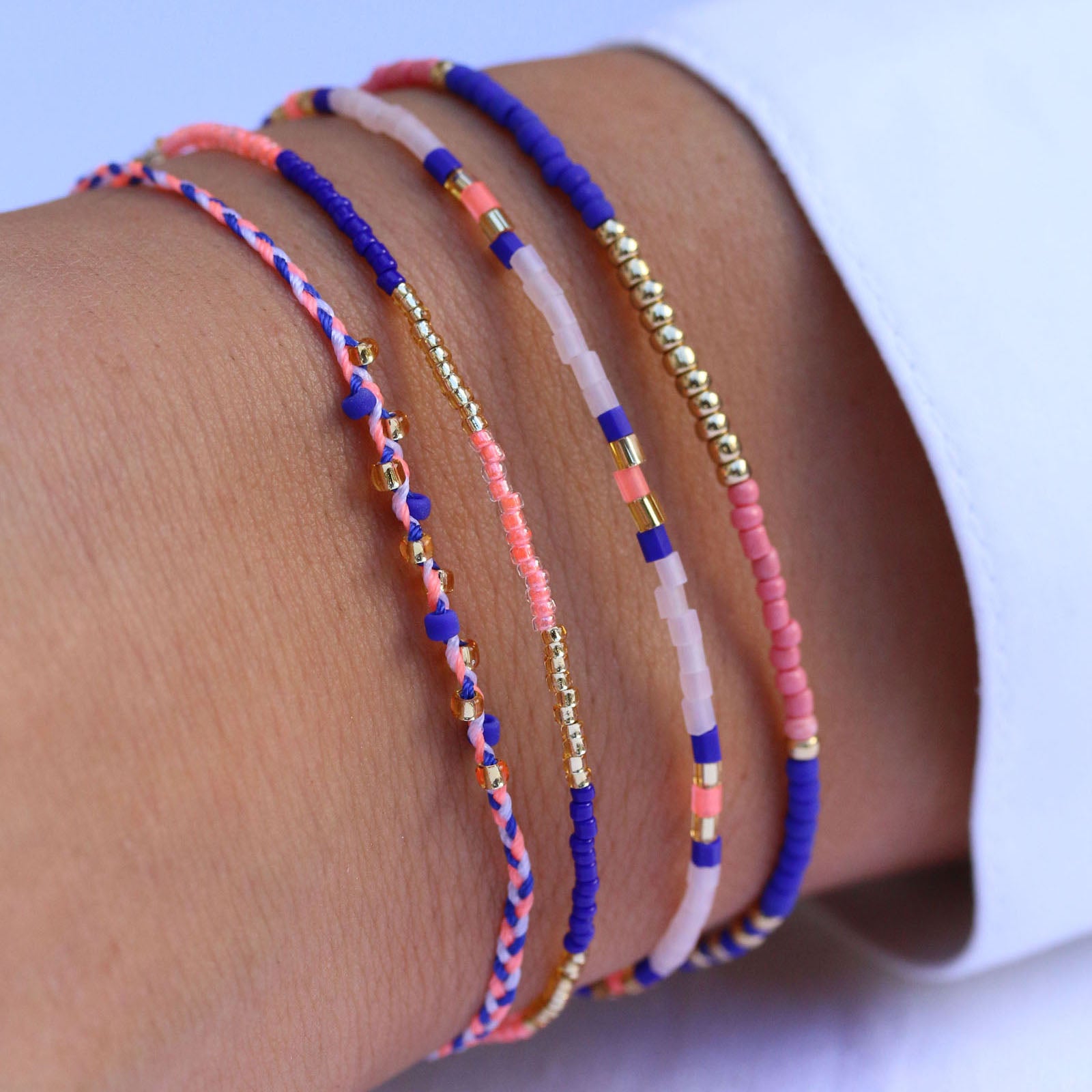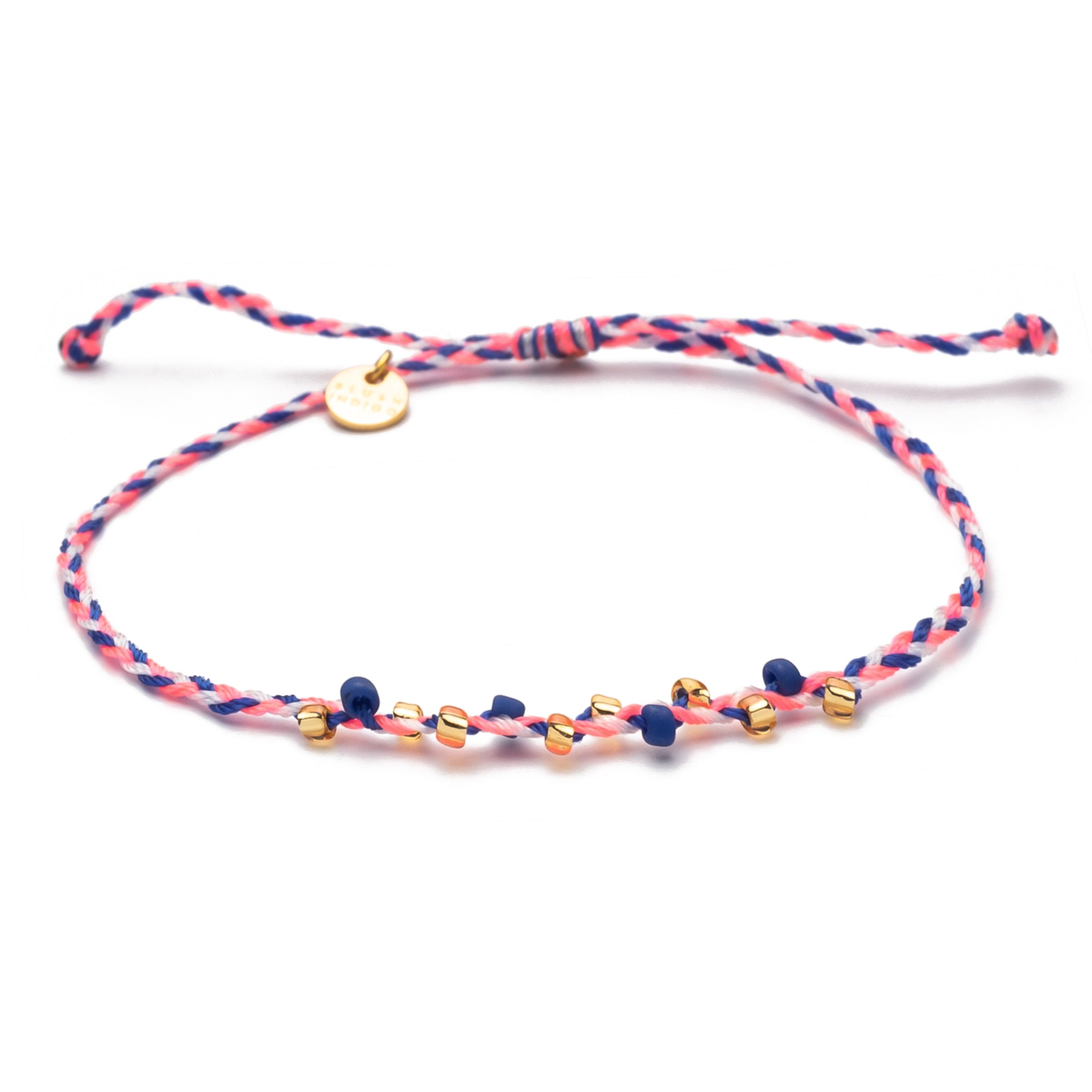 The temperature is rising with this hot mix in Neon Coral, Pink and Indigo Blue. Two Amalfi bracelets with beads in Indigo Blue, Neon Coral, Neon Pink, Frosted Blush and Gold team up with one coral Sweet String bracelet and one Take a Twist bracelet with interwoven beads.