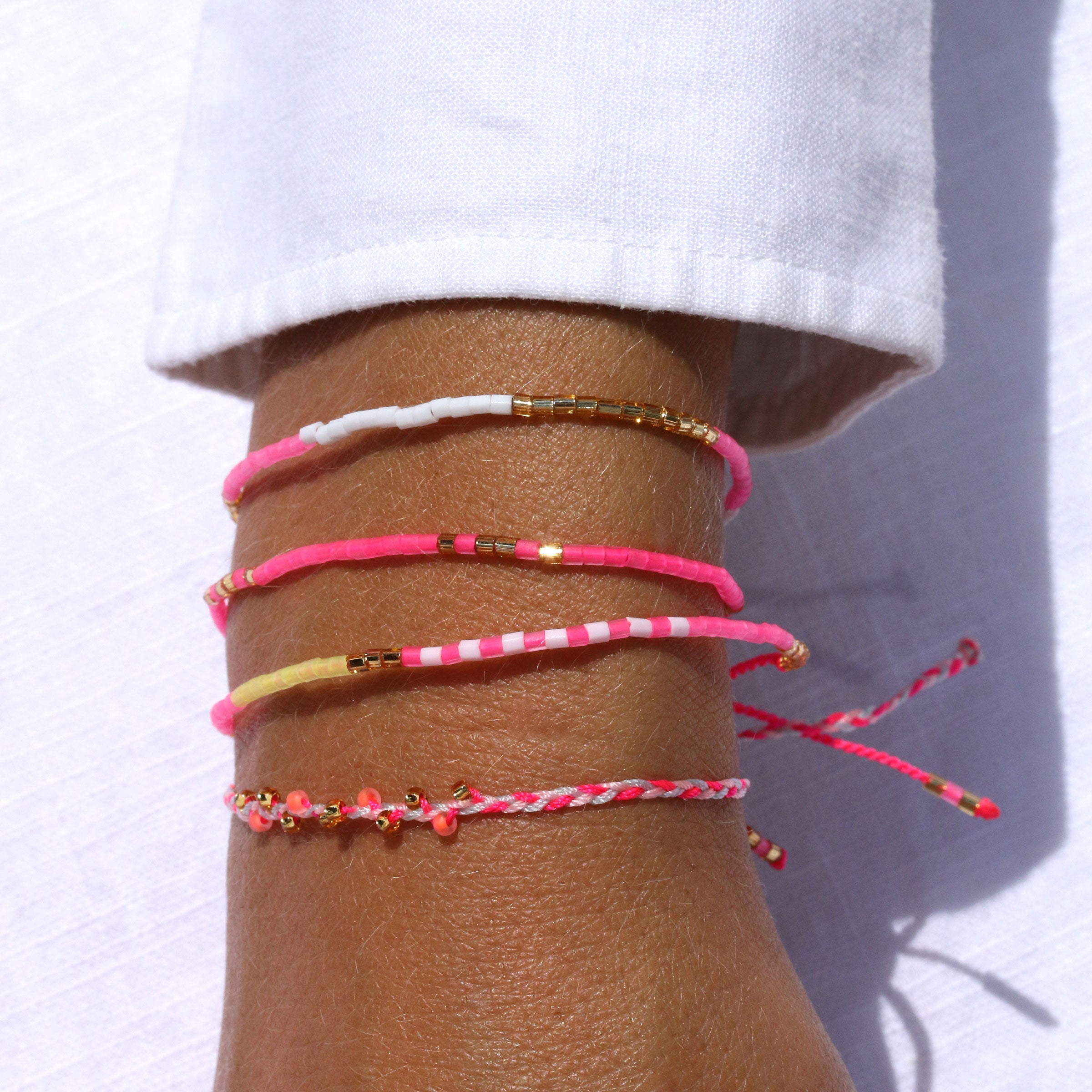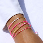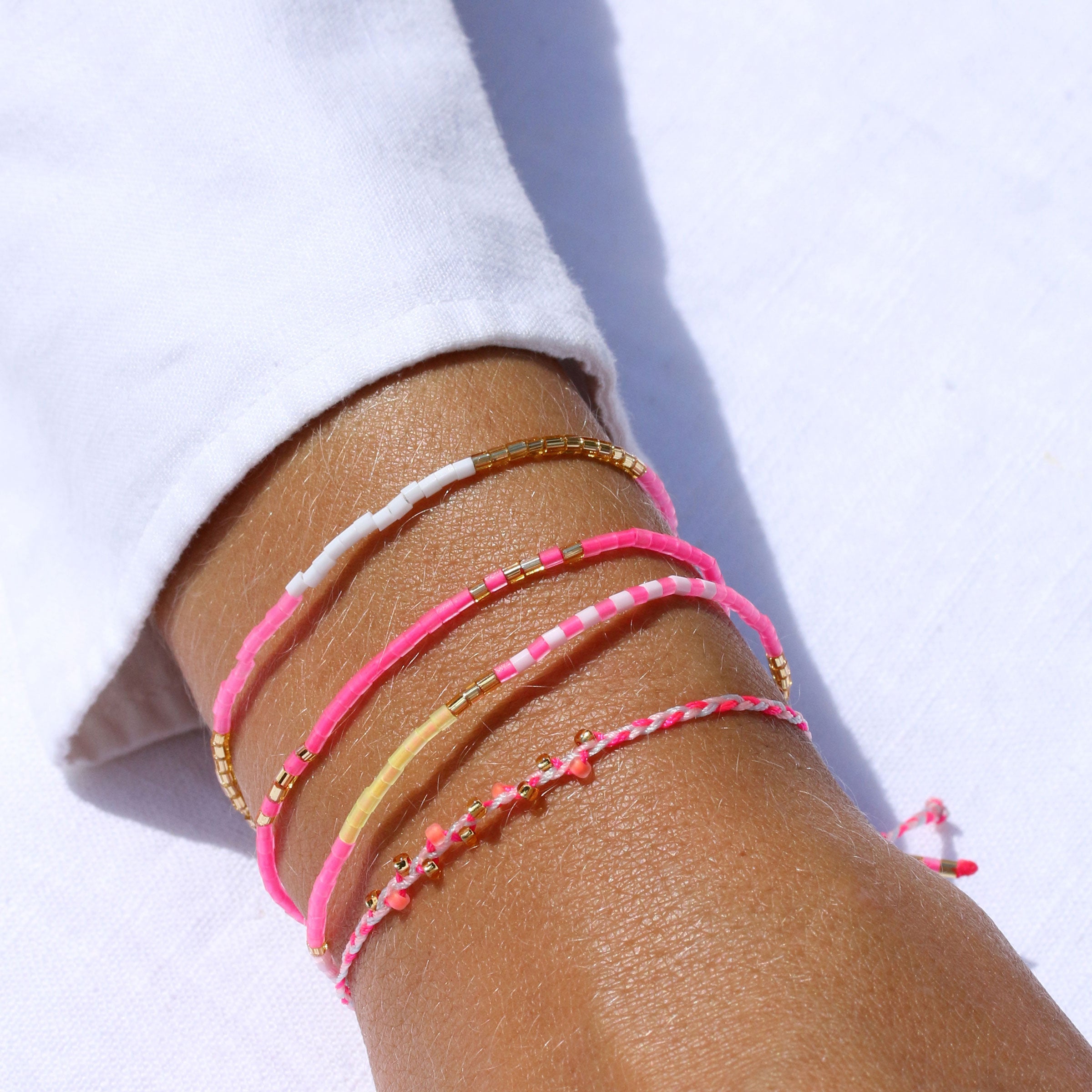 Meet me in Malibu! We added a bit of mango sorbet to our pretty pink bracelet stack.