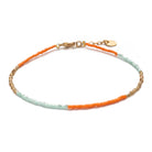 We love mixing orange and fresh mint hues. Each bracelet of our Mandarine stack features some shade of matt orange and shiny mint green. Gold beads add elegance to this pretty quartet.