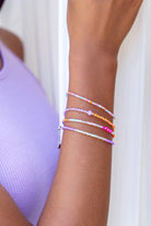 Two colors set the tone for our Bologna bracelet mix: purple and matt orange. The centerpiece of the Piazza series is a 4 mm lilac glass bead. Alternating silver beads provide an elegant finish.