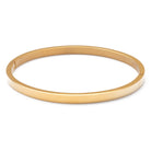 The bangle has a diameter of 6 cm is is best suited for dainty wrists. It is made of 18k gold plated stainless steel.
