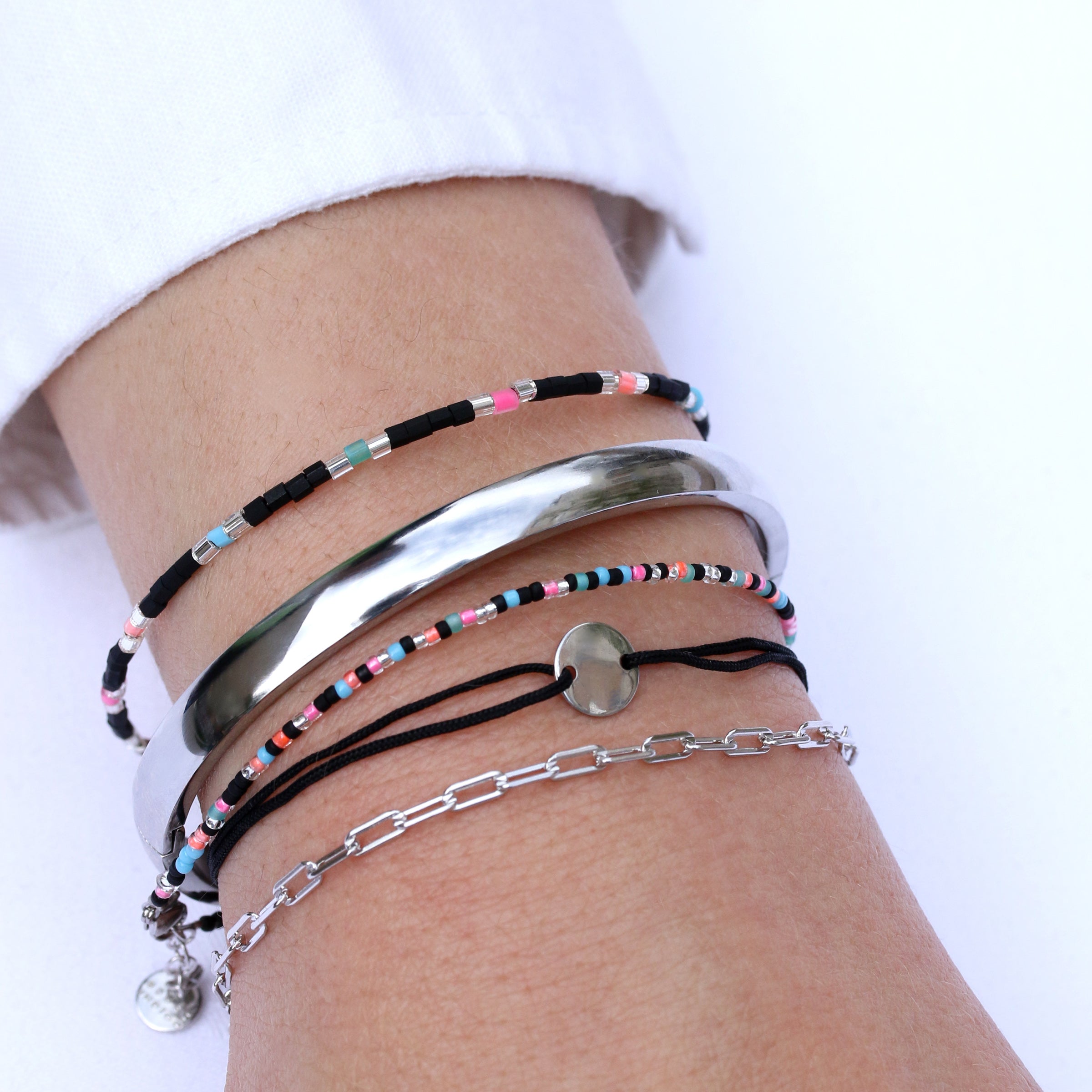The simple Eternity bangle is a timeless classic on the wrist. You can enjoy it on its own or combine it with our colourful Bali ribbons. The 6 mm wide bangle wraps around your wrist completely and is closed with a hinged clasp that closes very tightly and securely.
