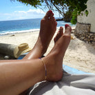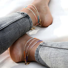 dainty carabiner, extension chain and logo tag. The anklet is 23 cm