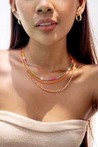 Our Bali Beach collection is a wild rocaille bead mix of matching necklaces, bracelets and anklets. Shaken and stirred, with a good shot of neon and freshwater pearls, seasoned with fresh mint. Your cocktail mix of the summer is ready. Happy hour? Always!