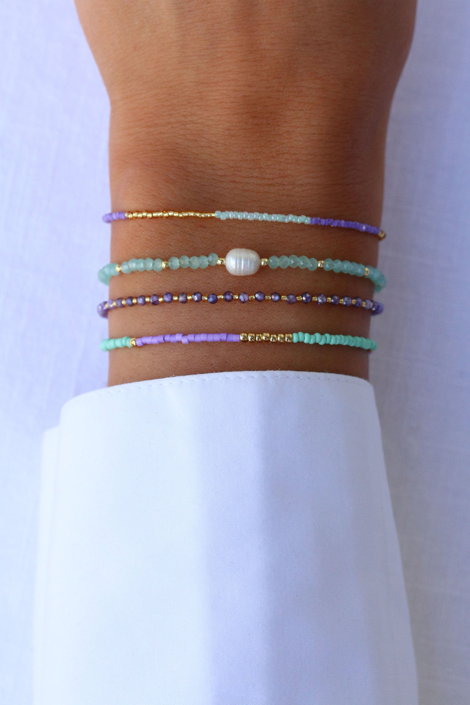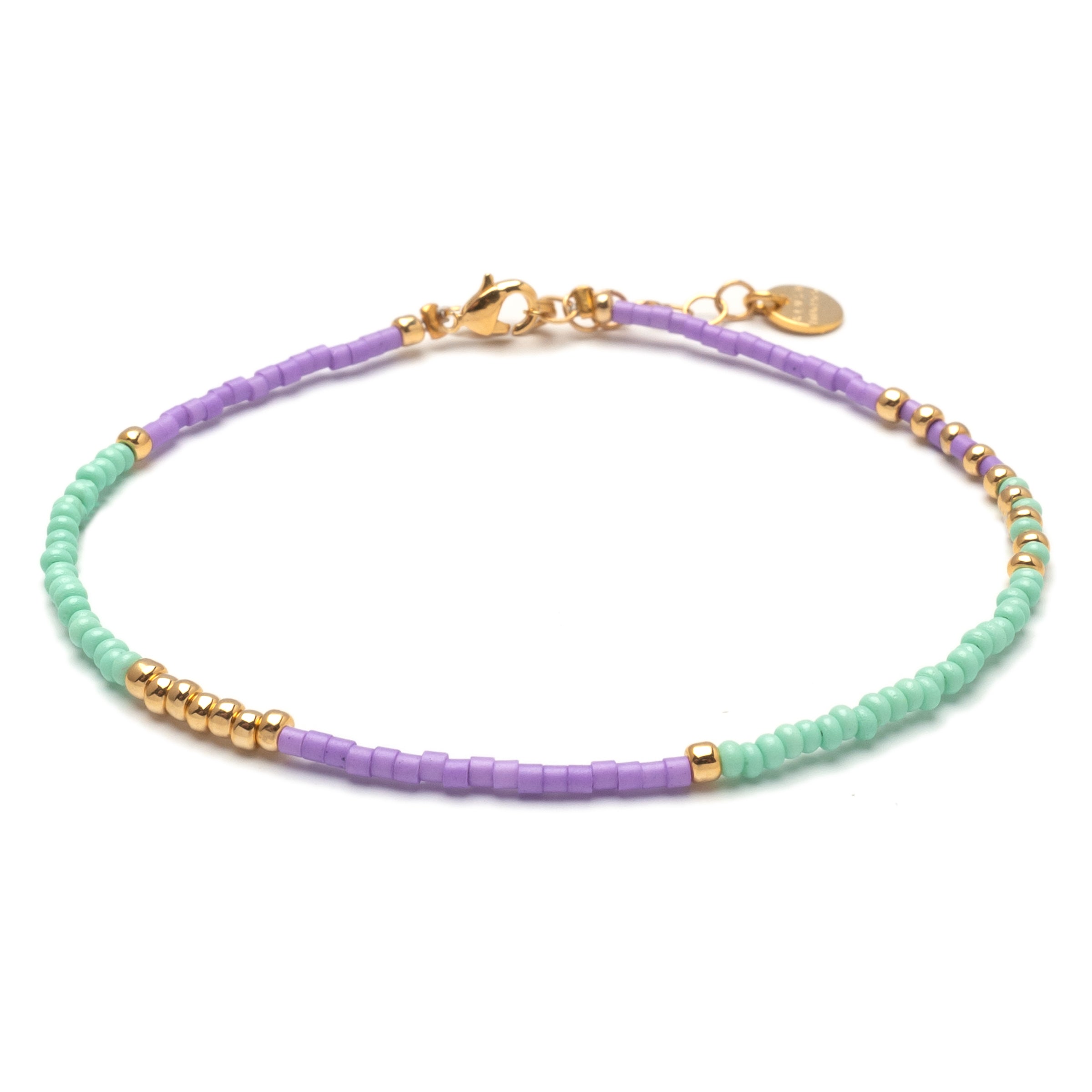 Matte beads in mint green and lavender make the gold bracelet Fresh Lily a glamorous eye-catcher on the wrist. The round gold beads of our Maya series are high-quality gold-plated and particularly durable.