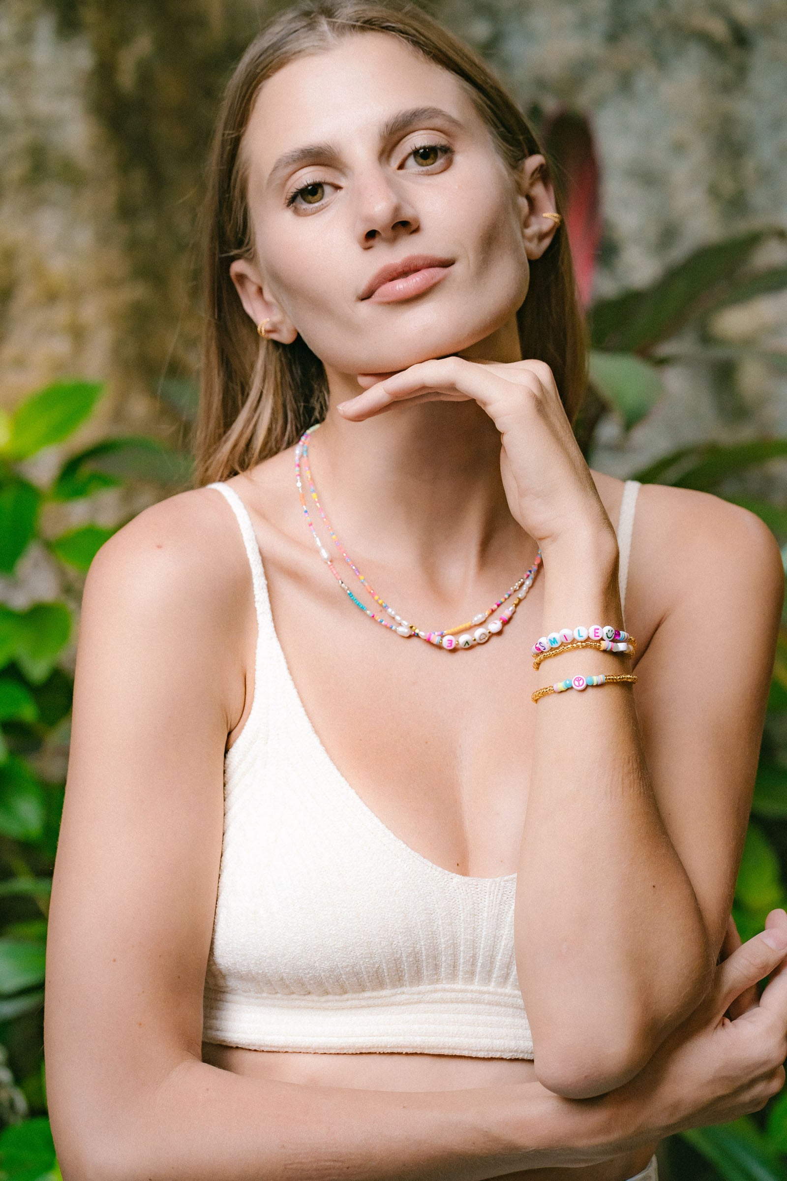 This also applies to the gold and silver beads. These are coated on the inside, so they will become duller over time due to wear on the jewelry wire. Please follow our care instructions below to ensure you can enjoy your jewelry for a long time.