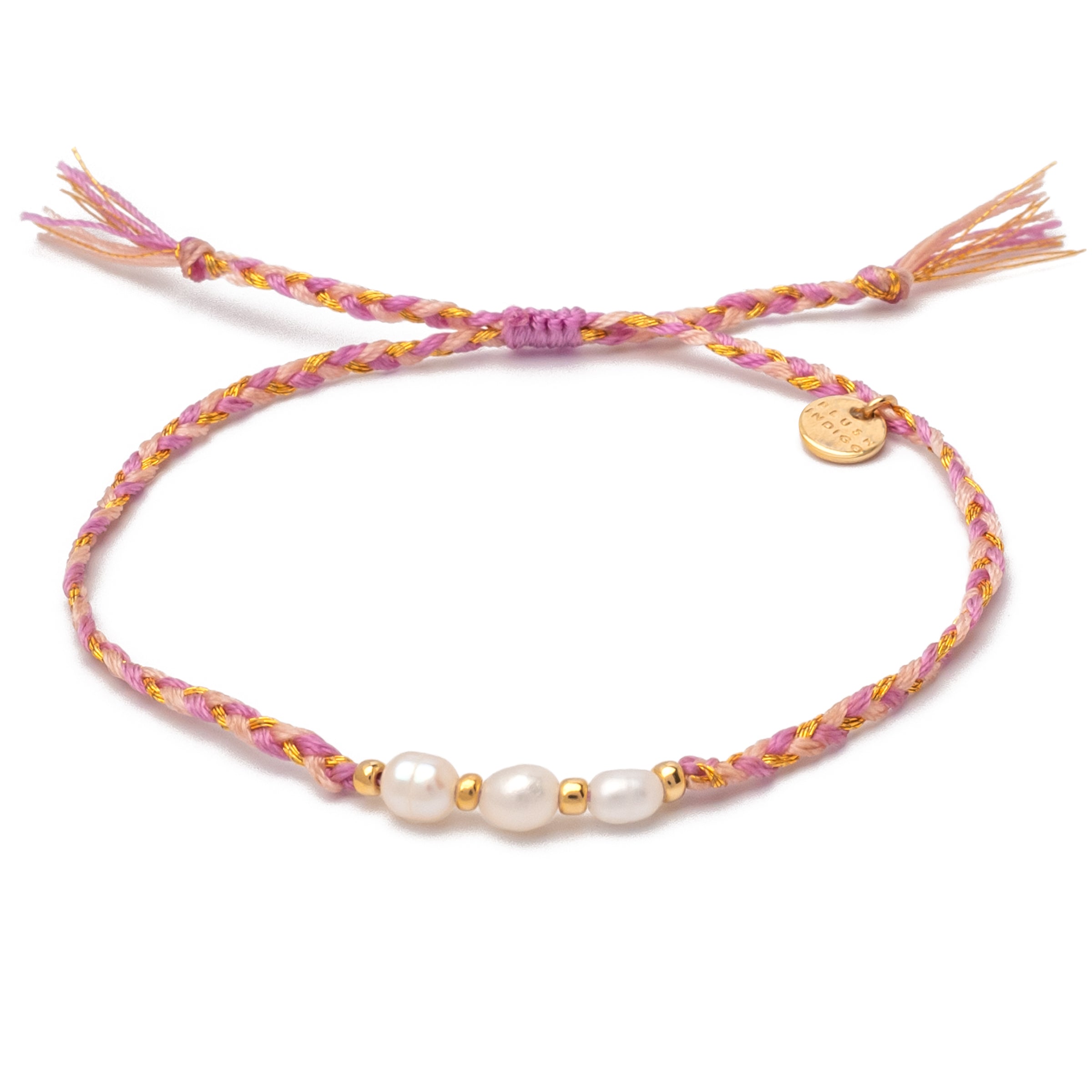 Our Dolce bracelet is a braided color sensation in the colors ocean green, beige and gold. Three freshwater pearls threaded in the middle bring a summer vacation mood to your wrist.