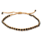 Your time to shine! Our Mino bracelet combines bold color accents with an irresistible glow. The black glass crystals are knotted in rows with glittering gold-colored textile to create a sparkling bracelet.