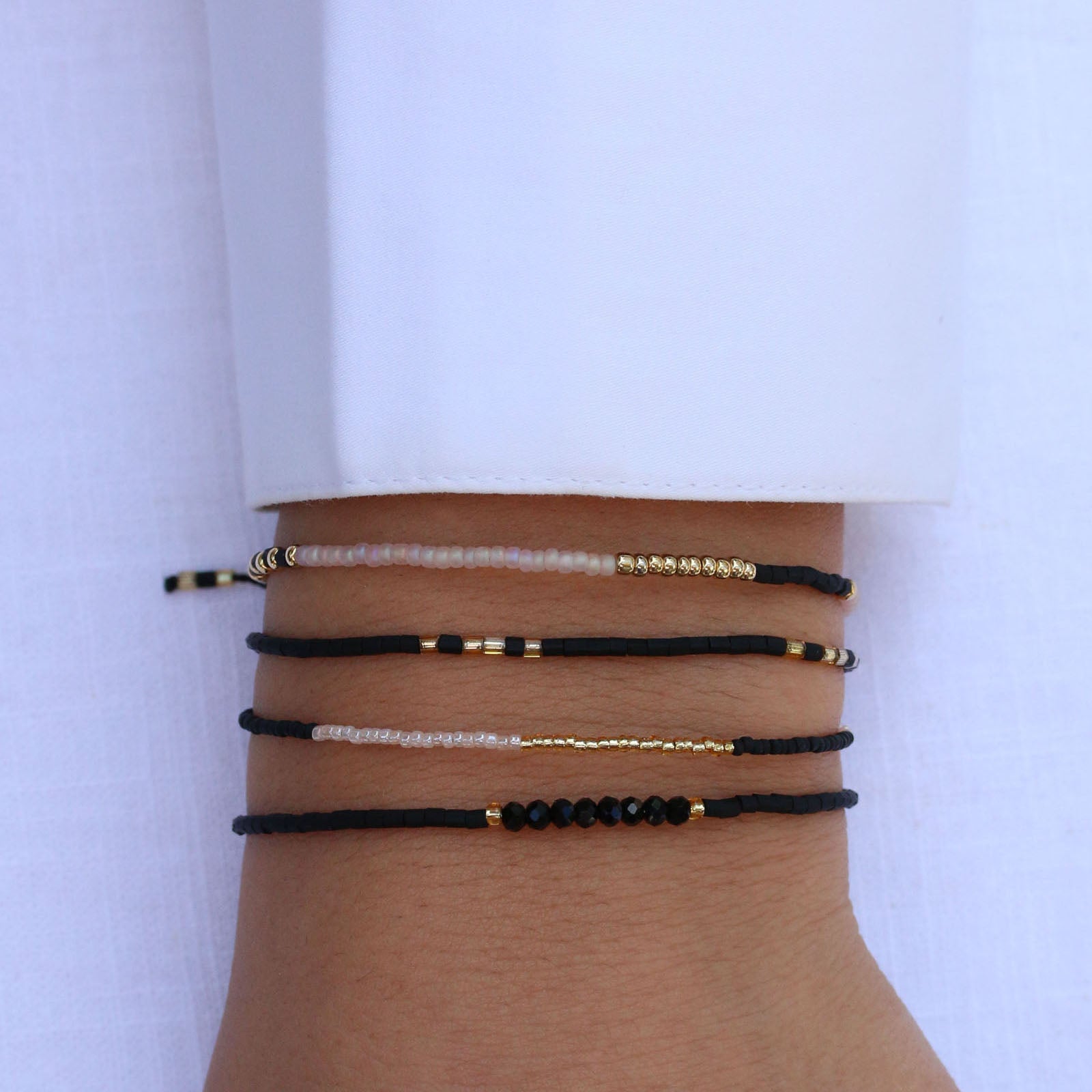 Less colorful, simply stunning. The multiple bracelet set Black Sprinkles will shower you in gold, black and silky-white sprinkles.