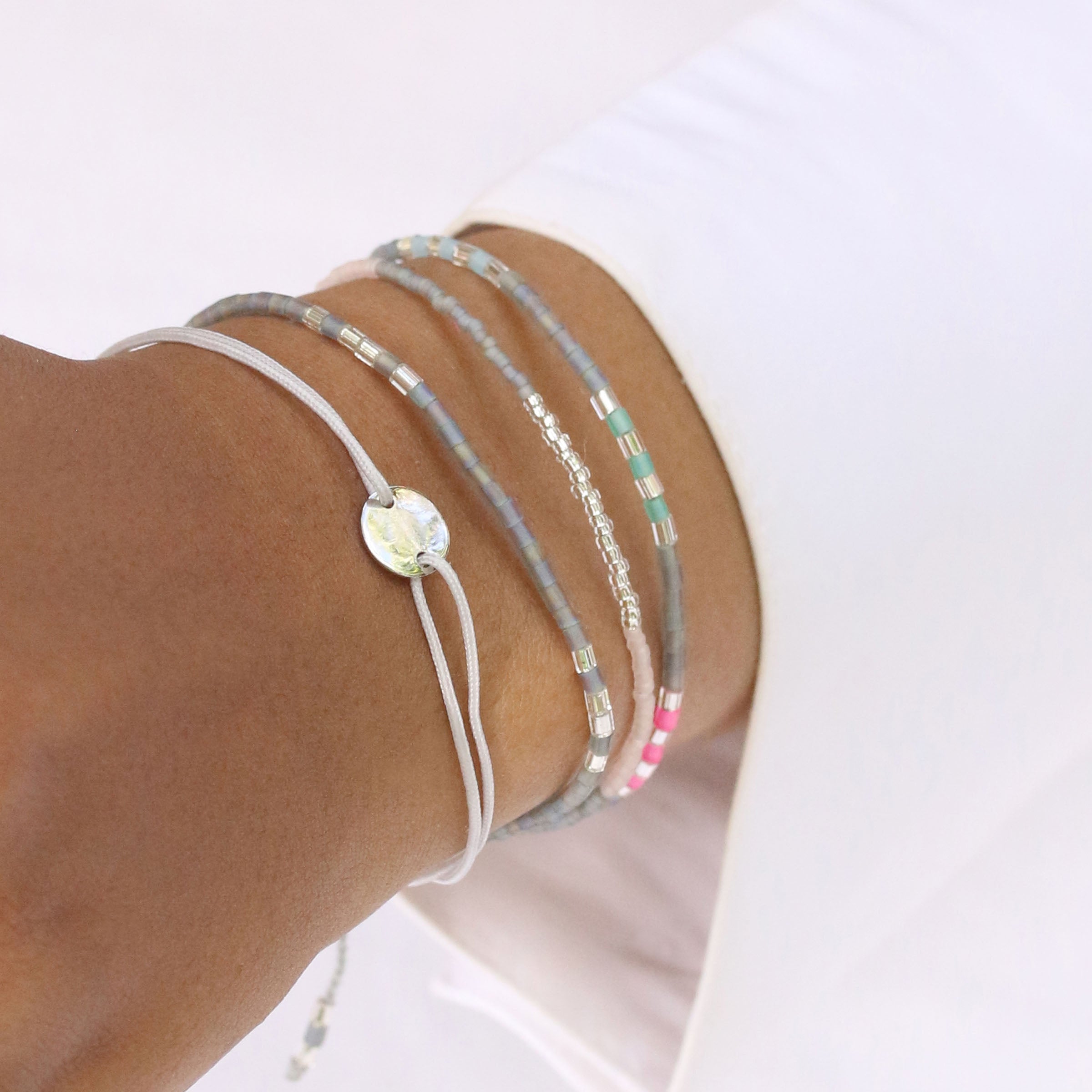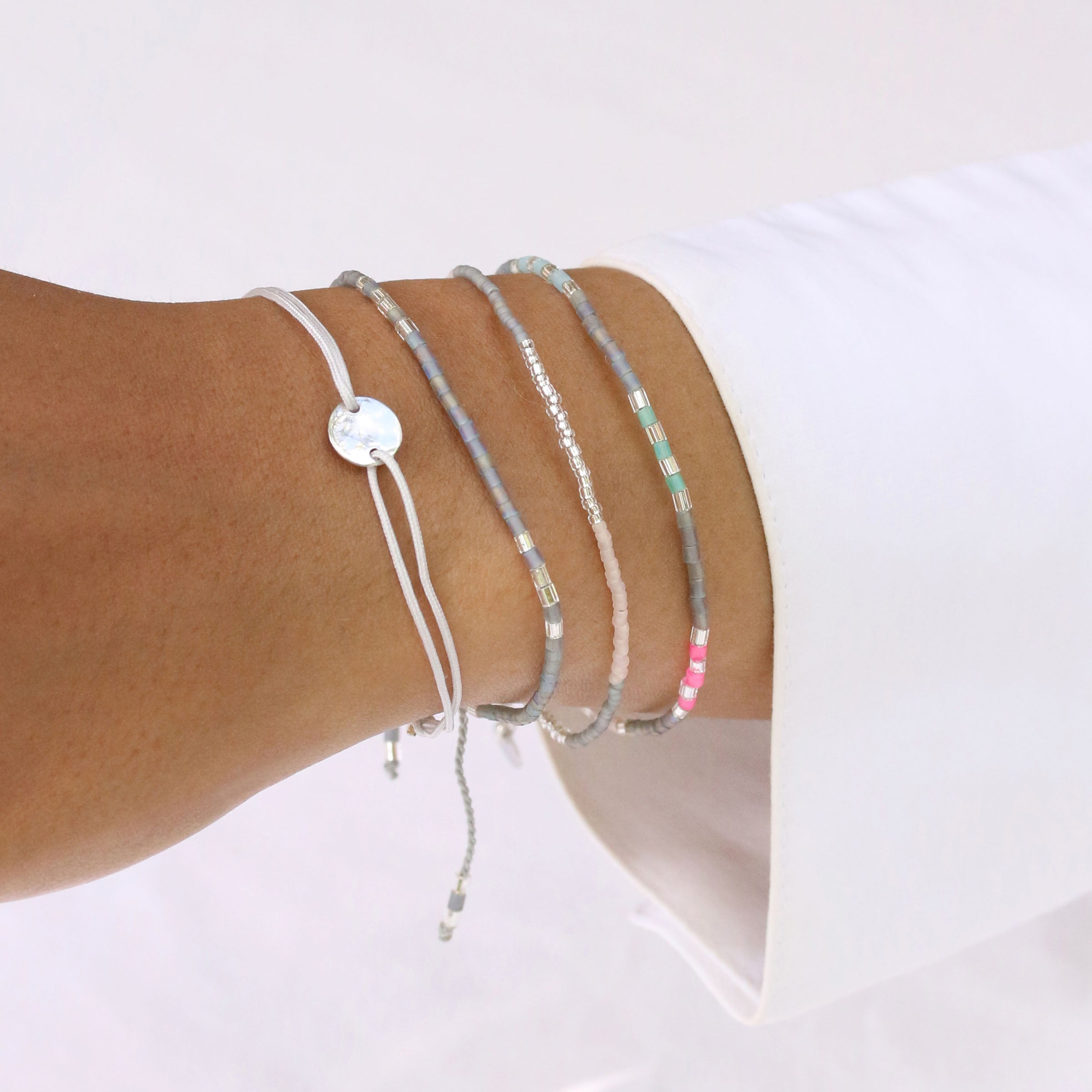 Finally, our Bali bracelets in Frosted Grey also shine with silver beads. Inspired by our perennial bestseller Grey Sky, we've added only subtle color accents for this bracelet quartet.