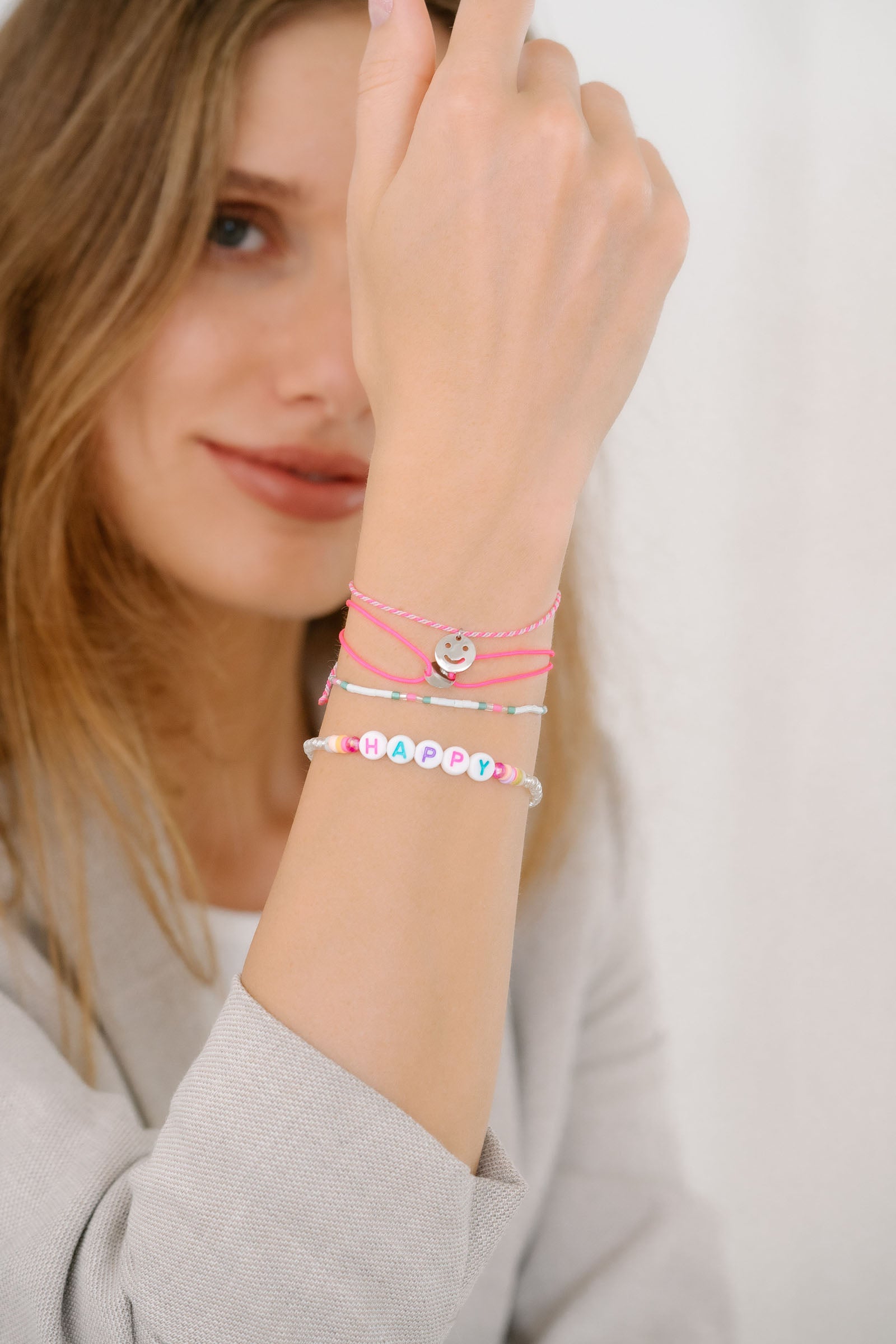 Don't worry, be happy! Our silver Happy Mix Set will put a smile on your face. Colors in neon pink, turquoise, ocean green and white make the good mood set complete.