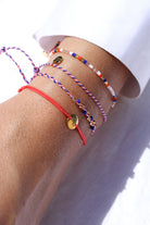 All metal pieces are 24k gold dipped made in Germany and Italy. The bracelets Sweet String, True Temple, Take a Twist and Darling Disc are all adjustable in size.