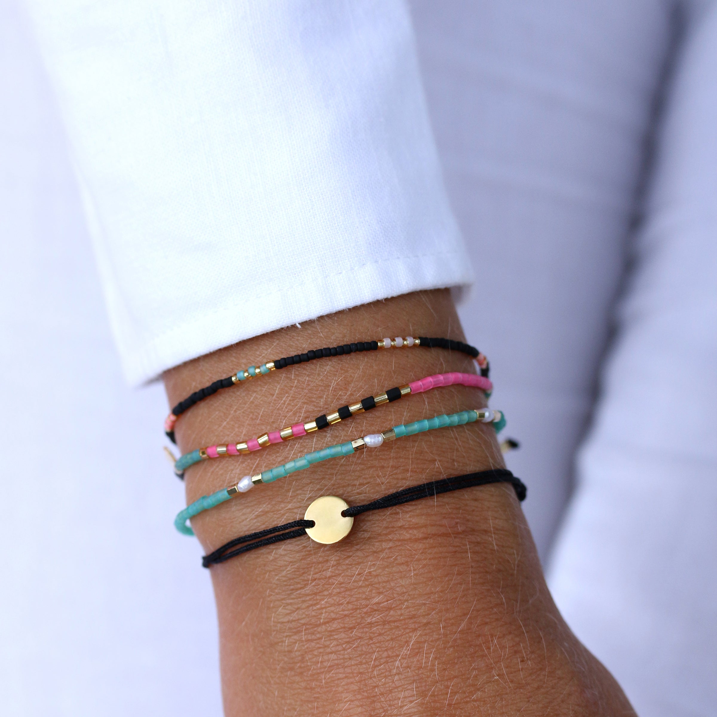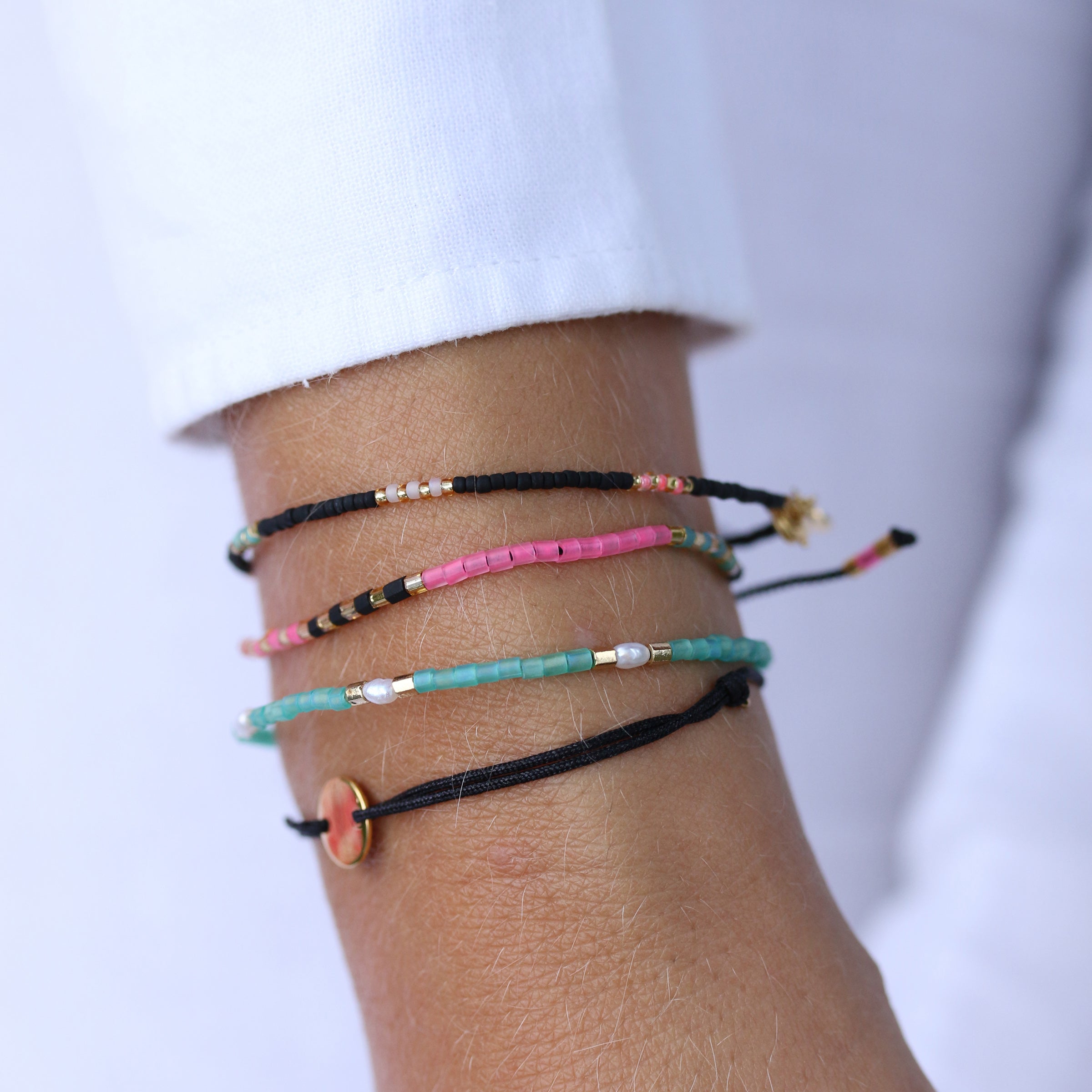 Tiamo! A mix-set like a love poem in Black, Ocean Green, Pink and Gold beads. Here you can have a closer look at each of the bracelets: