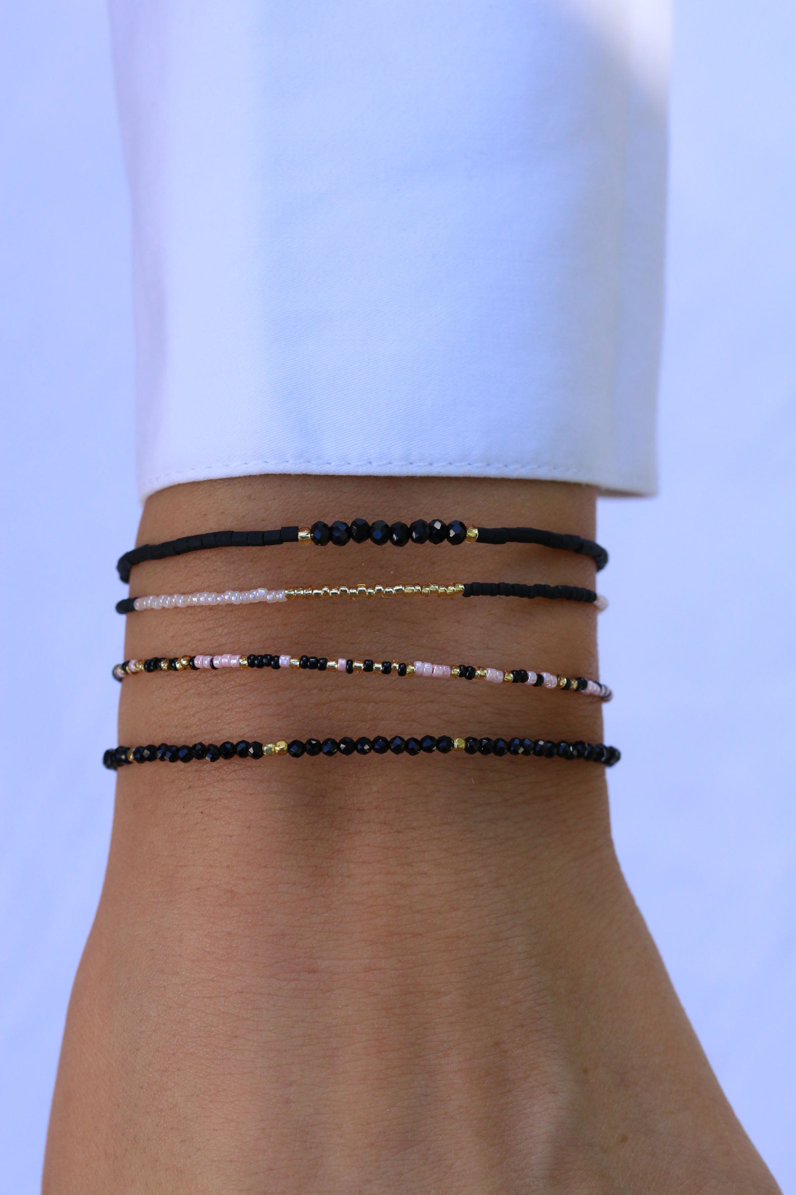 This bracelet made of black onyx and gold plated metal cubes is an elegant and modern piece of jewelry that fits many outfits and occasions. The black onyx stones are of high quality and have a smooth, polished surface that makes them comfortable to wear.