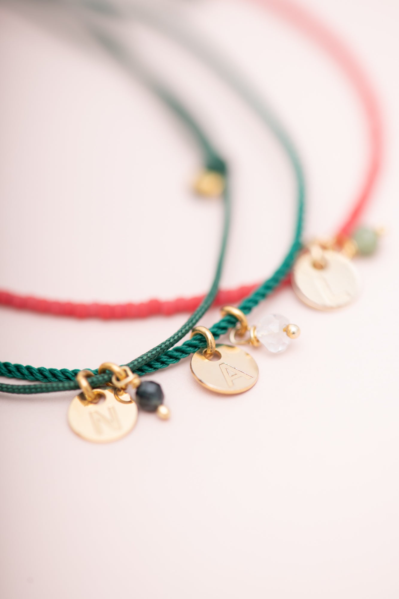 The bracelet can be adjusted in size by the knot closure. Our 6 mm logo tag is made of 24k gold plated brass and from Italy.