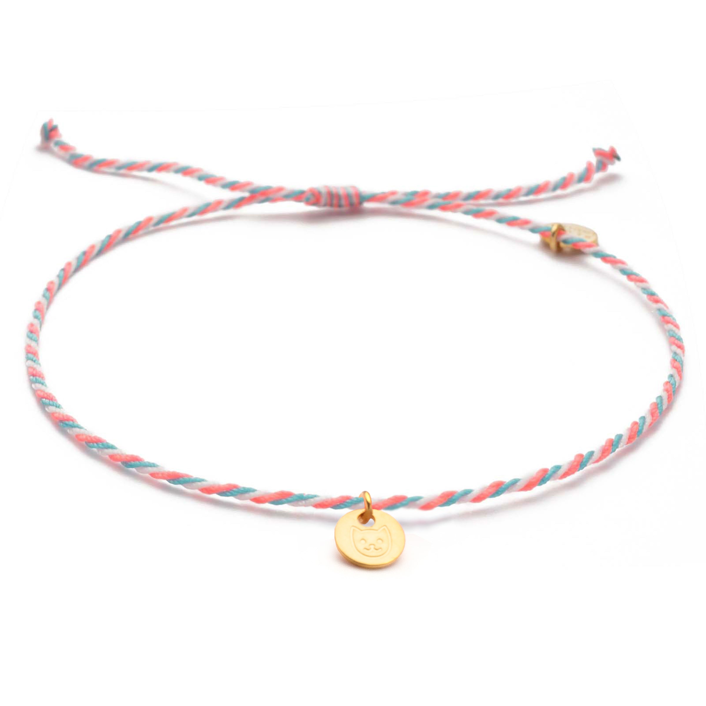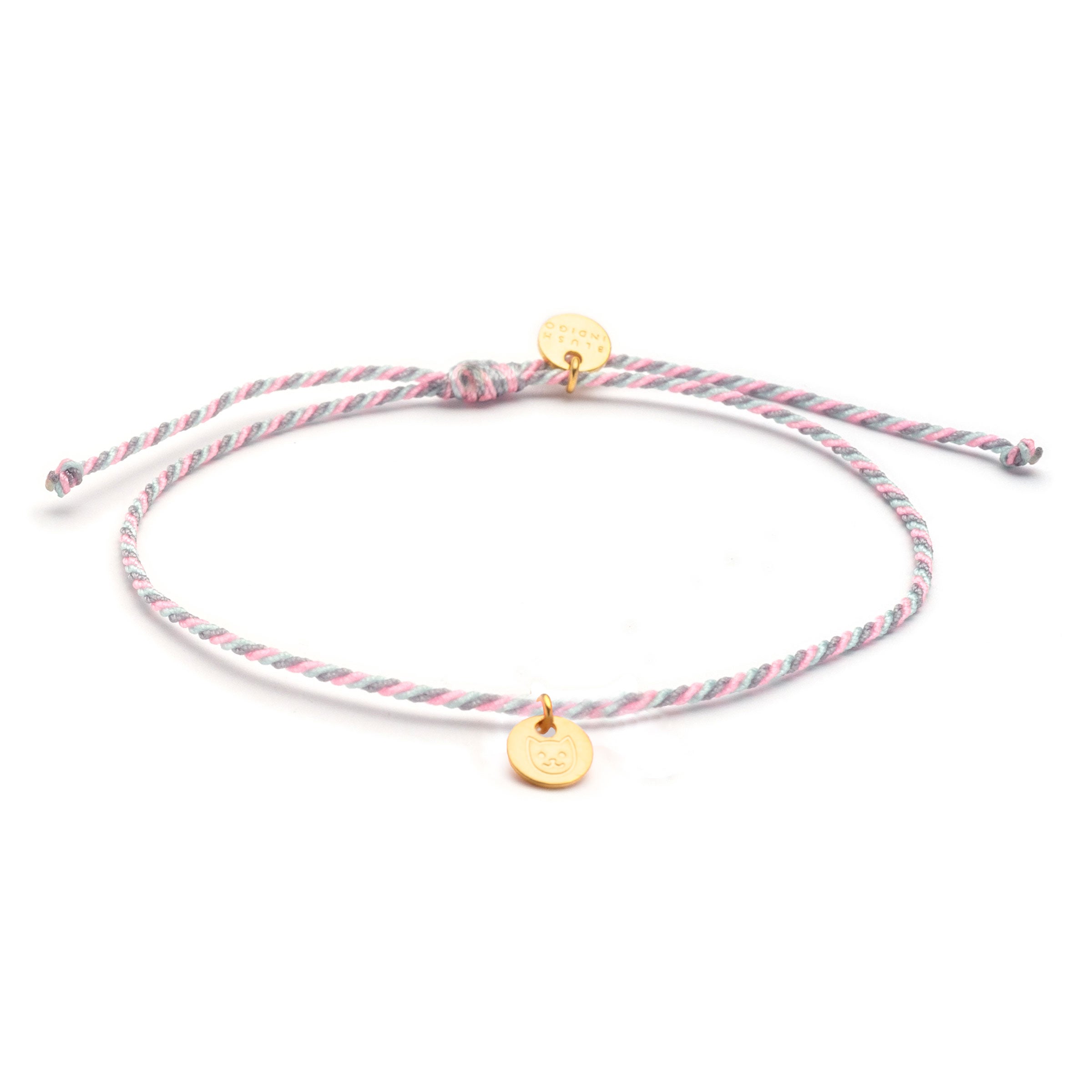 The circular 10 mm smiley pendant isavailable in gold and silver . The ribbon can be adjusted in size by a knot closure. All metal parts used are made of 24k gold plated brass and originate from Germany and Italy.